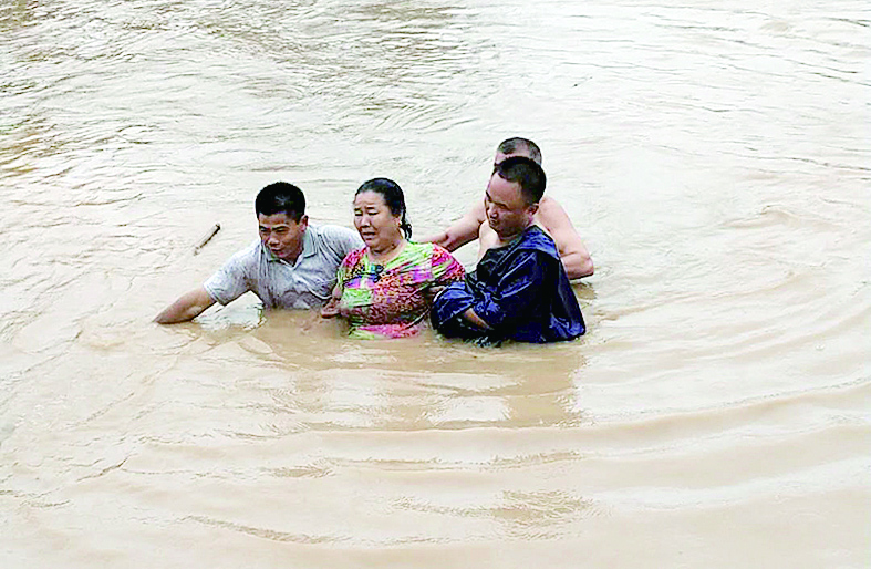 茶陵群众被困水中,村书记江小平(右二)联合村民跳下水救人。 通讯员 供图
