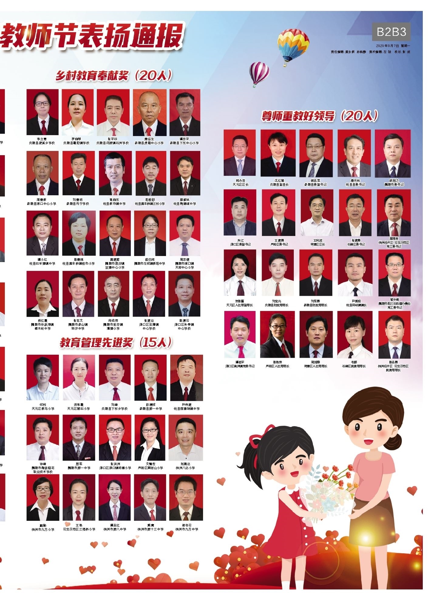 第B3版:株洲市2020年教师节表扬通报