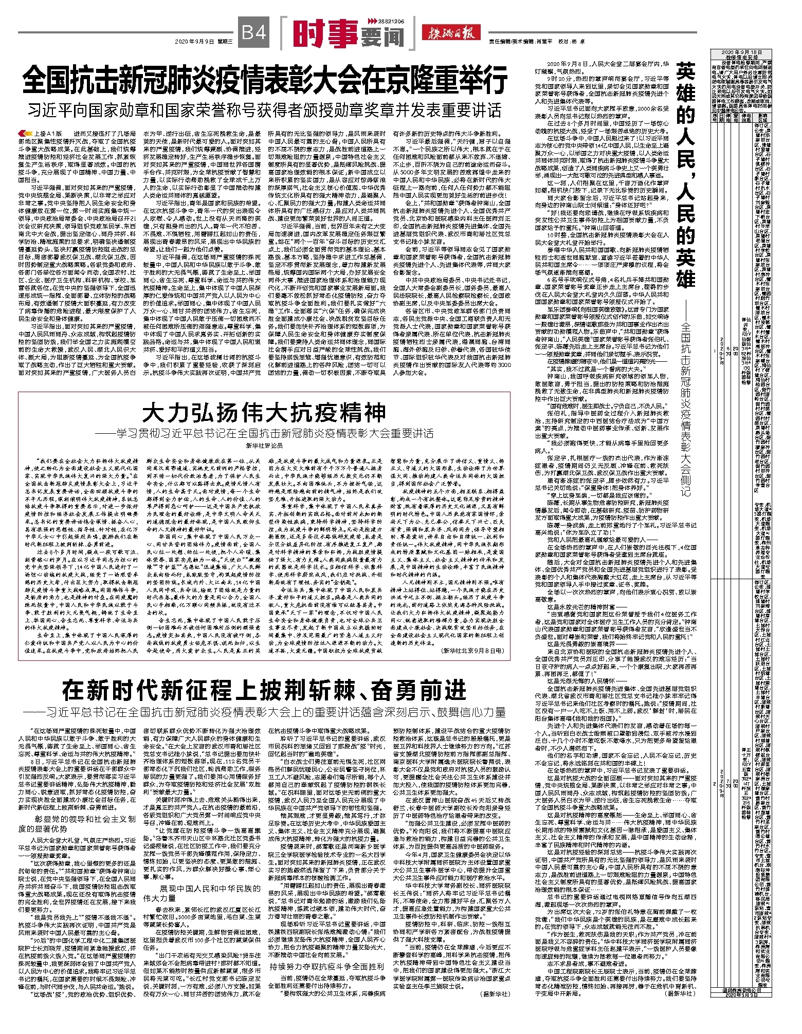 “在这场同严重疫情的殊死较量中,中国人民和中华民族以敢于斗争、敢于胜利的大无畏气概,铸就了生命至上、举国同心、舍生忘死、尊重科学、命运与共的伟大抗疫精神。”