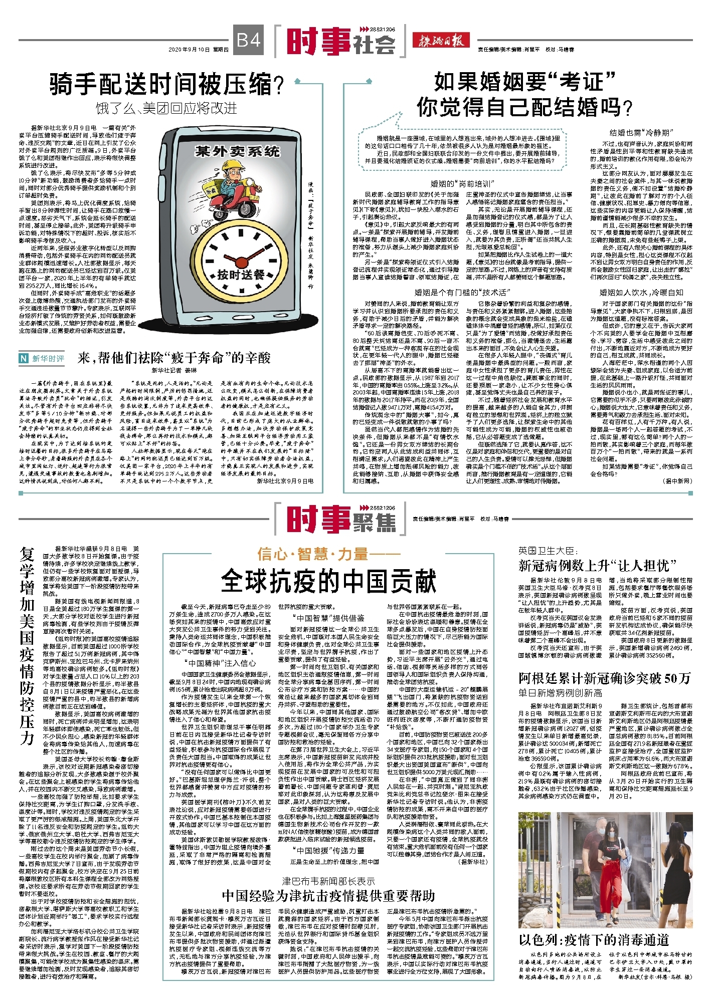 以色列多地的公共场所设立消毒通道,当行人通过时,通道可自动向行人喷洒消毒液,以防止新冠病毒传播。图为9月8日,在位于以色列中部城市拉马特甘的巴尔伊兰大学入口处,戴口罩的学生穿过一条消毒通道。 新华社发(吉尔·科恩·马根 摄)