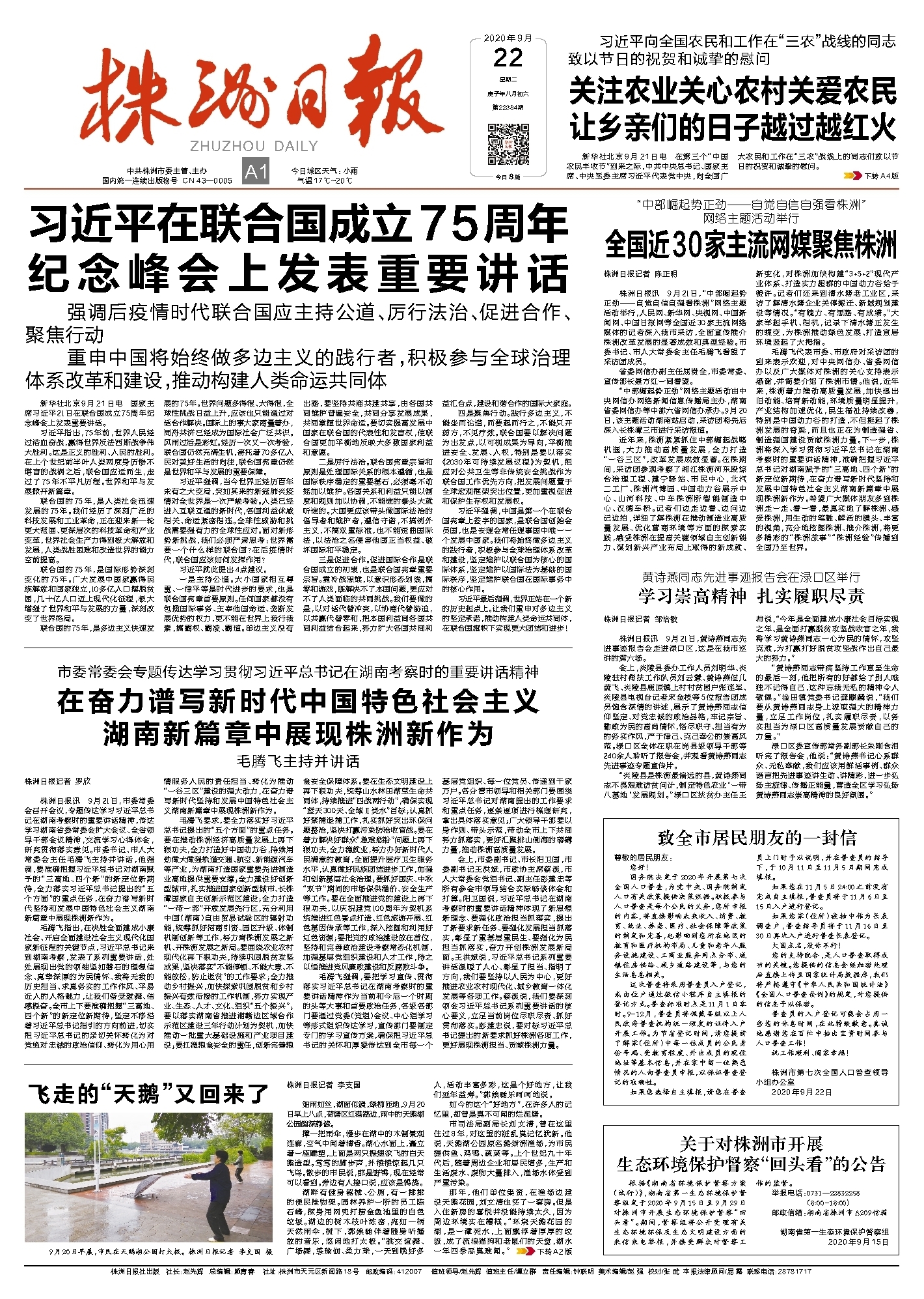 新华社北京9月21日电 在第三个“中国农民丰收节”到来之际,中共中央总书记、国家主席、中央军委主席习近平代表党中央,向全国广大农民和工作在“三农”战线上的同志们致以节日的祝贺和诚挚的慰问。 习近平指出,当前正是秋粮收获的季节,祖国大地到处是丰收景象。今年丰收来之不易,突如其来的新冠肺炎疫情、长江流域严重洪涝灾害、东北地区夏伏旱、连续台风侵袭给粮食和农业生产带来挑战。全国广大农民和基层干部发扬伟大抗疫精神,防控疫情保春耕,不误农时抓生产,坚持抗灾夺丰收,为保持经济社会大局稳定提供了有力支撑。