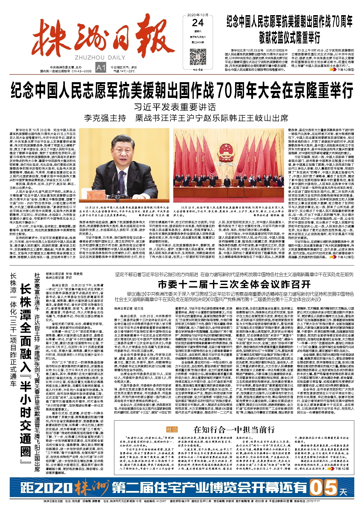 • 新华社北京10月23日电 10月23日纪念中国人民志愿军抗美援朝出国作战70周年大会召开前,以中共中央总书记、国家主席、中央军委主席习近平名义敬献花篮仪式在辽宁沈阳抗美援朝烈士陵园、丹东抗美援朝纪念塔和朝鲜平壤中朝友谊塔、桧仓中国人民志愿军烈士陵园等四地隆重举行。