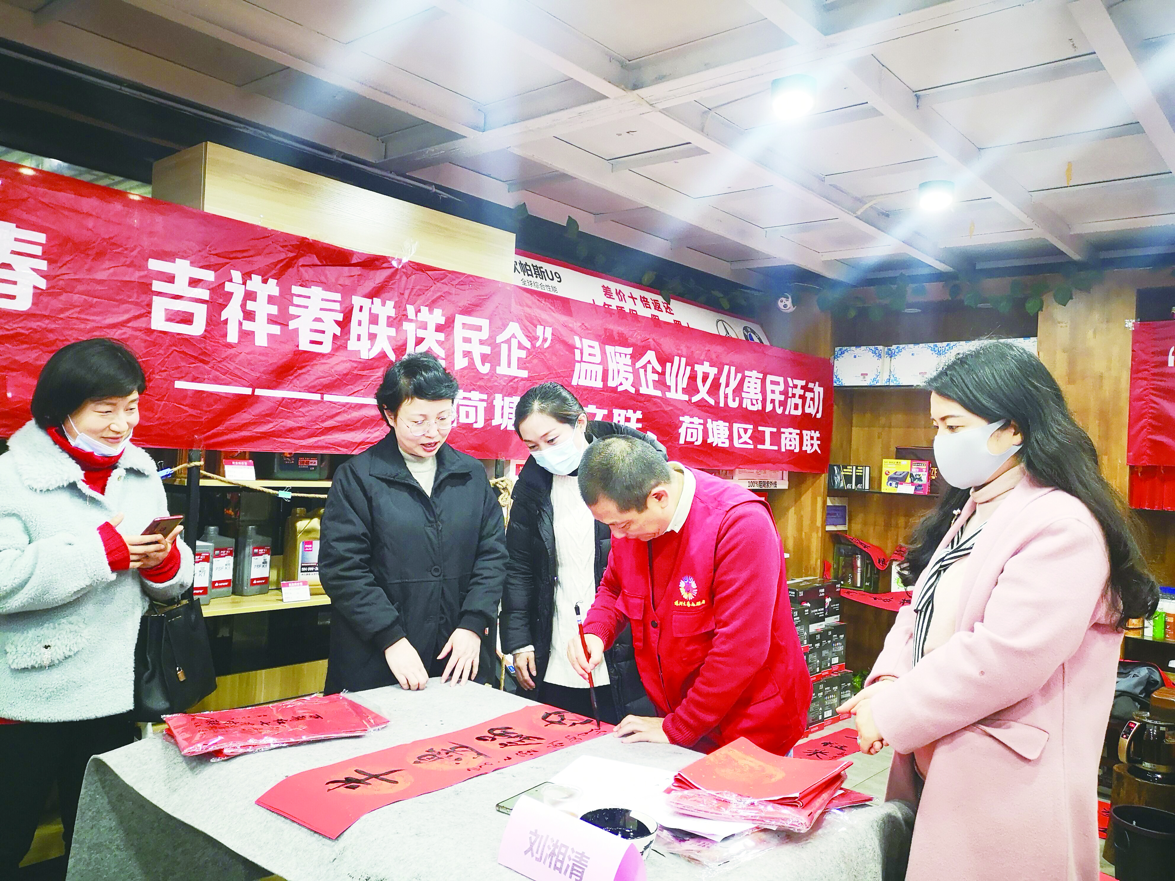 临近春节,荷塘区委统战部、宣传部、工商联联合区文联,组织本土知名书画家走进企业,开展多场“幸福荷塘迎新春·吉祥春联送万家”文化惠民活动,为企业、基层职工写春联,送去新春祝福。