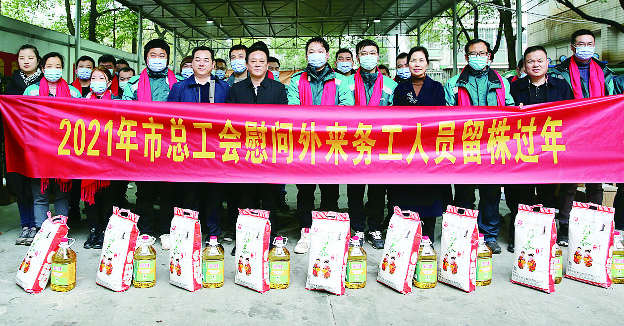 “感谢你们送来的慰问品,让我们这些留株过年的人员也感受到浓浓的过年氛围。”日前,市总工会“送温暖”活动现场,接到慰问品的肖强激动不已。