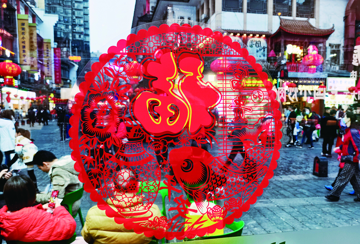 荷塘区,一家餐馆的牛年福到窗花。 刘震 摄
