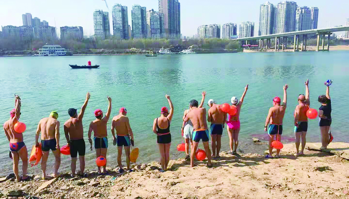 一群冬泳爱好者,大年初一,在湘江边结伴开游。忽急忽缓,往来自如。
