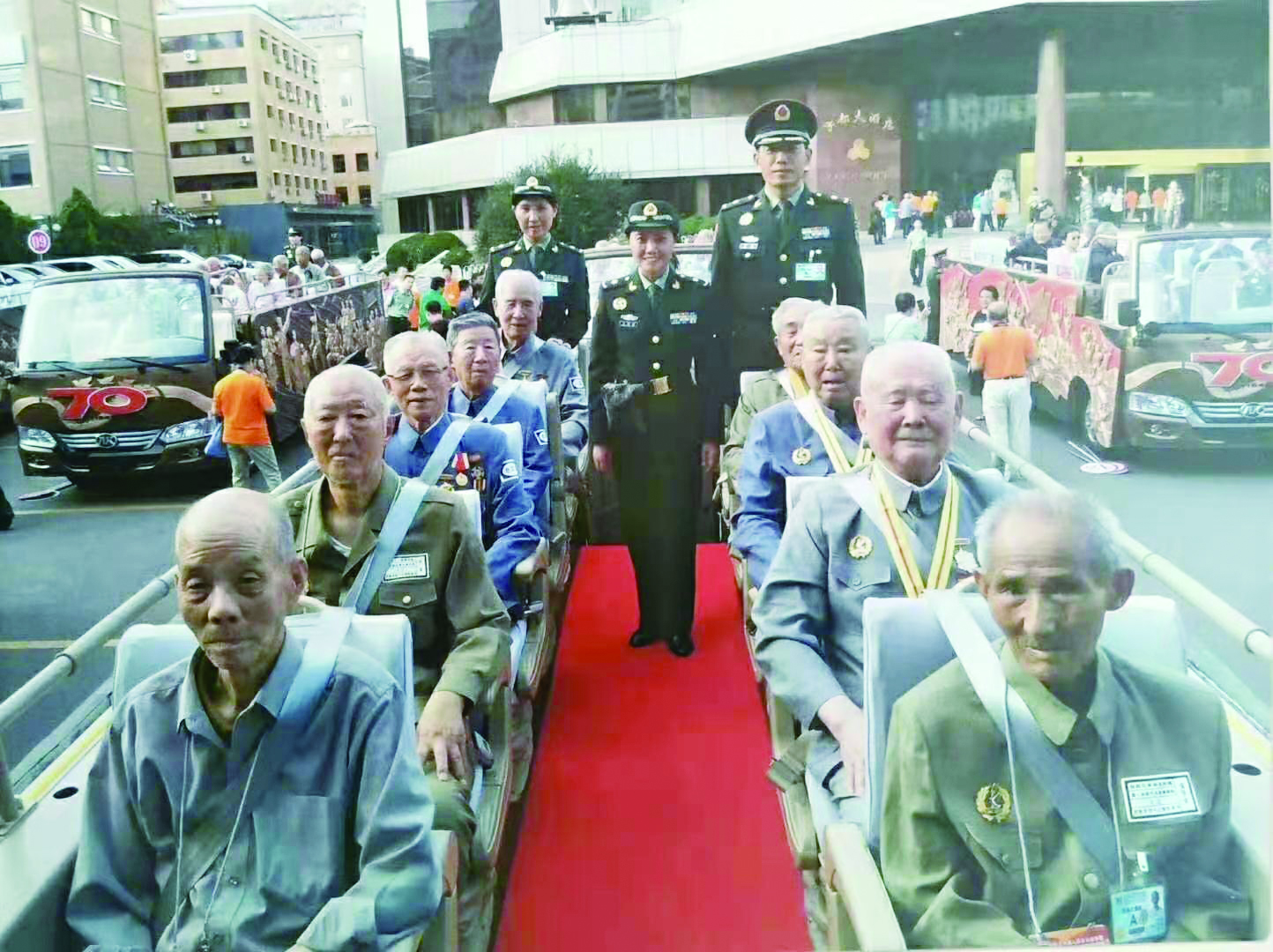 2015年9月3日,应邀参加纪念中国人民抗日战争暨世界反法西斯战争胜利70周年大阅兵。他登上抗战老兵方阵第12辆绿色敞篷车,坐在第1排左边(图中为右边)进行观礼。