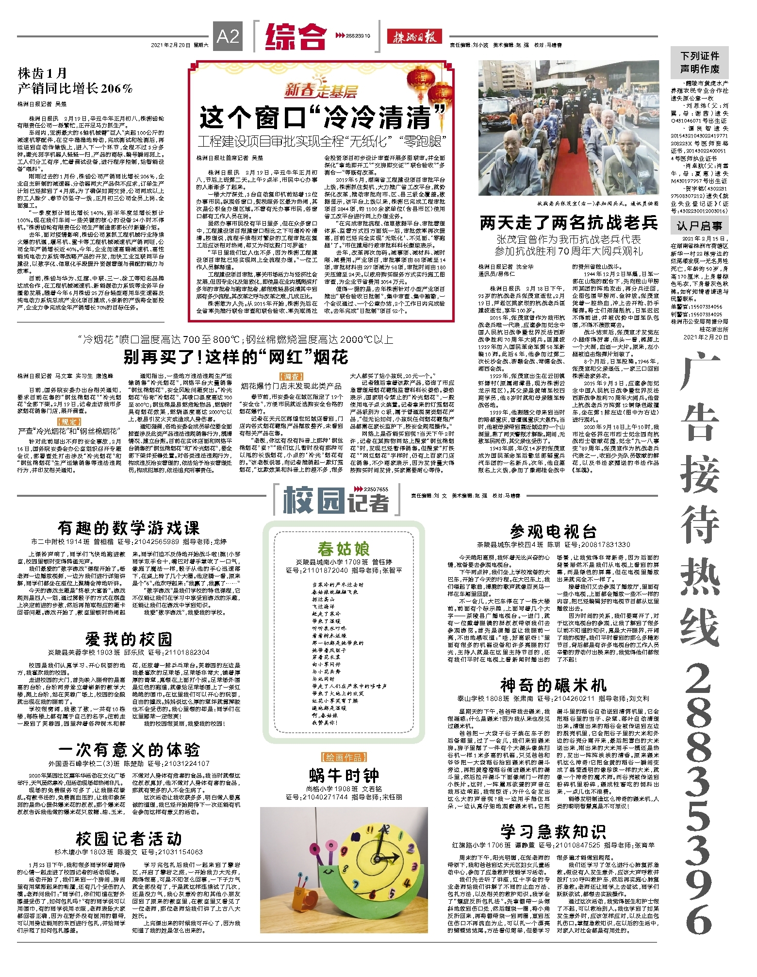 株洲日报讯 2月18日下午,93岁的抗战老兵张茂宜逝世。2月19日,芦淞区姚家坝的抗战老兵匡建波逝世,享年100岁。