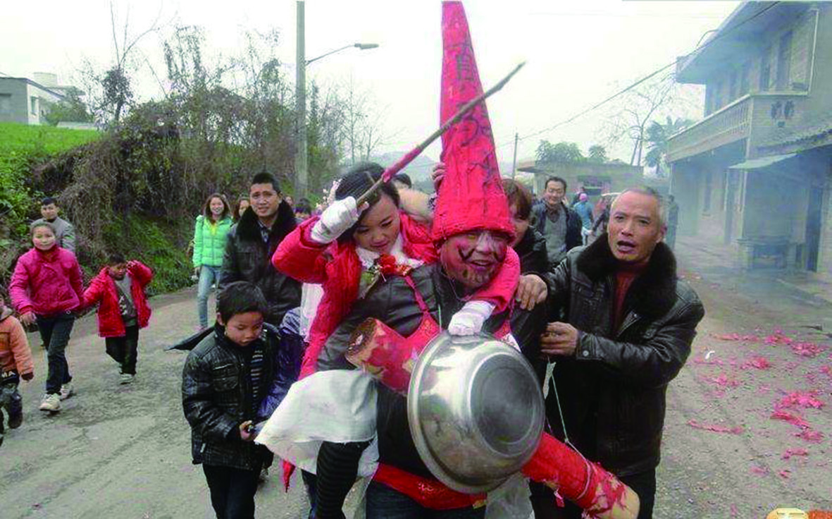 婚礼的高潮是闹公公“扒灰”,画鬼脸打扮,越丑越难看越开心