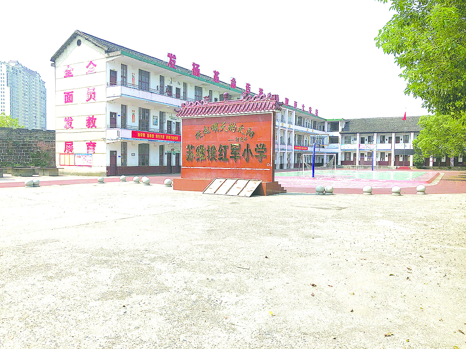 1933年,茶陵私立裕民职业学校从八总街迁入彭家祠。1943年,又在彭家祠创办茶陵县私立育民初级中学,将彭家祠侧的一栋旧矮房改建成一栋两层楼房,即4间教室的教学楼。1944年,日军向茶陵进犯,为保存实力,育民初级中学曾迁到湖口颜江村,风声、炮声、读书声,声声入耳,成为当年“万绿丛中一点红”。不久,该校又从颜江村迁入苍松挺拔、绿草如茵的炎陵山上,琅琅书声与松涛声汇聚一起,真是风景这边独好。日军投降后,育民初级中学搬回原址恢复开学。1952年,受衡阳专署委托,私立育民初级中学由县人民政府接管,迁入腊园,改名为茶陵县第三中学。县人民政府将湘豫高级小学、解放街小学、交通街小学合并成的解放完小,从县城江西会馆迁入彭家祠,共10个教学班。1962年上半年,解放完小迁入建新路,隶属教育局。解放完小搬走后,1962年,在彭家祠创办了星星小学。遵照“人民教育人民办”的原则,星星小学在原来4间陈旧设施的基础上,改建、扩建为一所完全小学。这块经历过辉煌与热闹、风雨与沧桑的风水宝地终于沉静下来了,开阔、气派、规整中的校园在树林的掩映下,呈现浓浓的人文气息和勃勃生机,尽显太平盛世的静谧与安详。