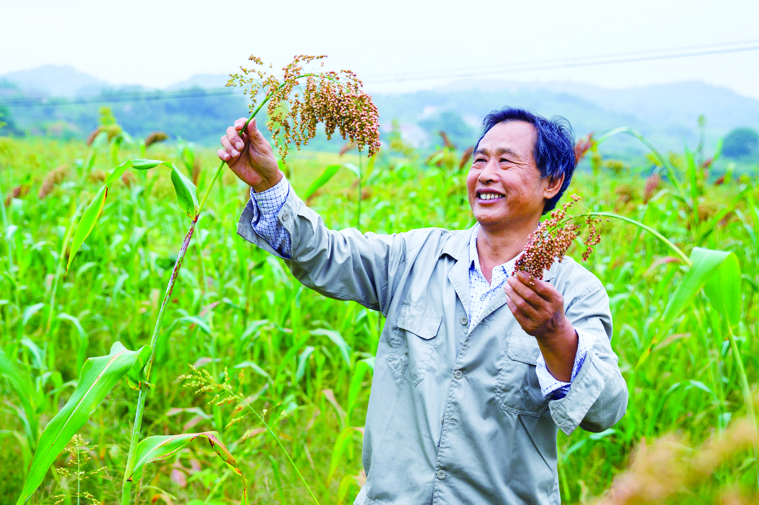 一串串籽粒饱满的高粱穗,让龙船镇板塘村李国民难掩脸上幸福的笑容。 汤洪忠 摄