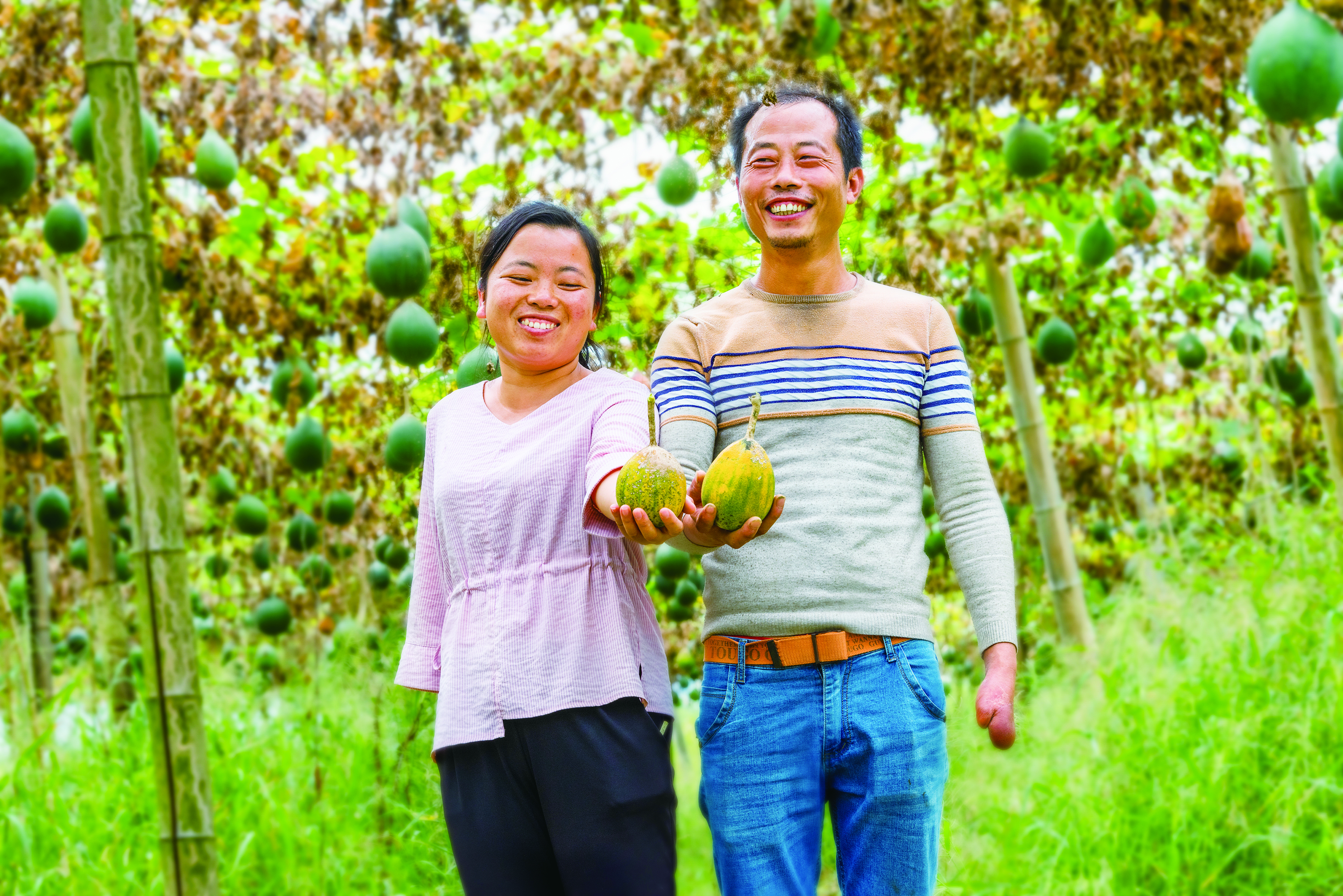 龙门镇太湖村唐铁球、谢凤丹夫妇种植的小小瓜蒌子,承载着他们致富的希望,也实现了他的脱贫梦想。 陈维平 摄