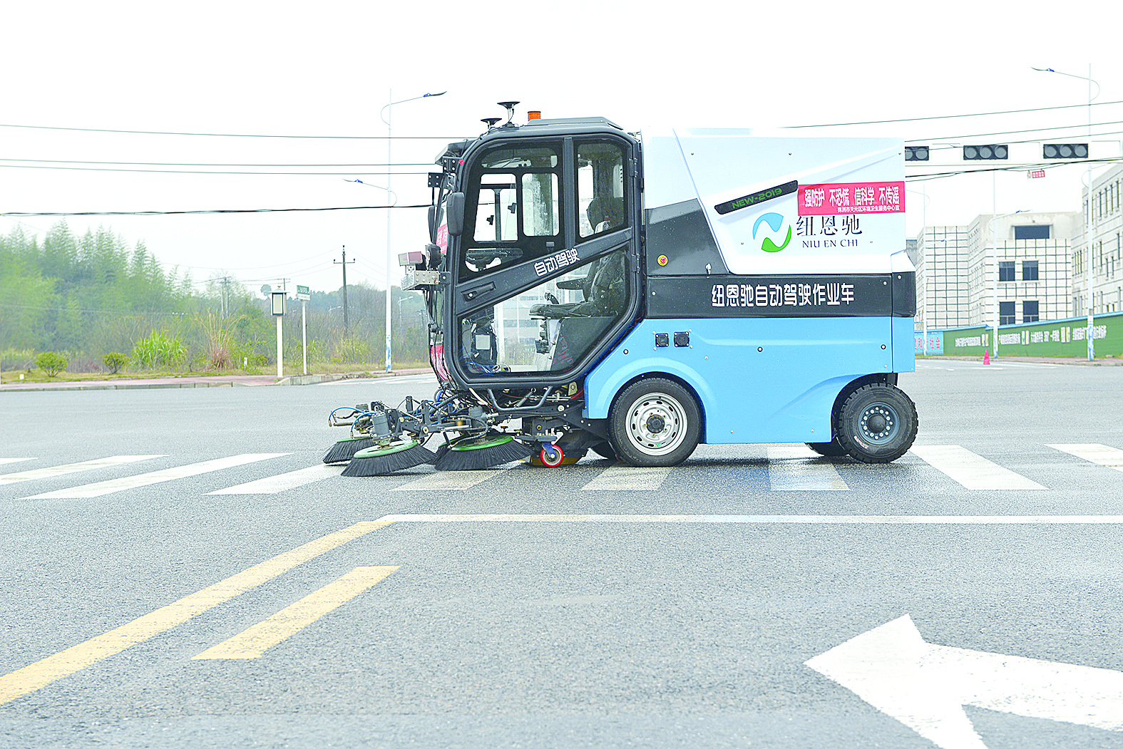 株洲某新能源车辆公司自主研制的自动驾驶环卫车 谢慧 摄