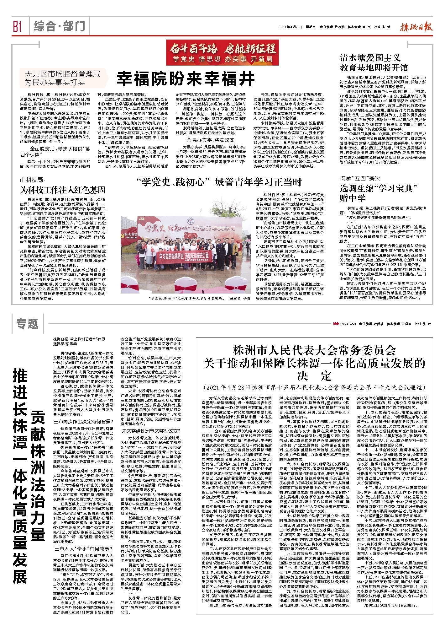 株洲市人民代表大会常务委员会 关于推动和保障长株潭一体化高质量发展的 决 定