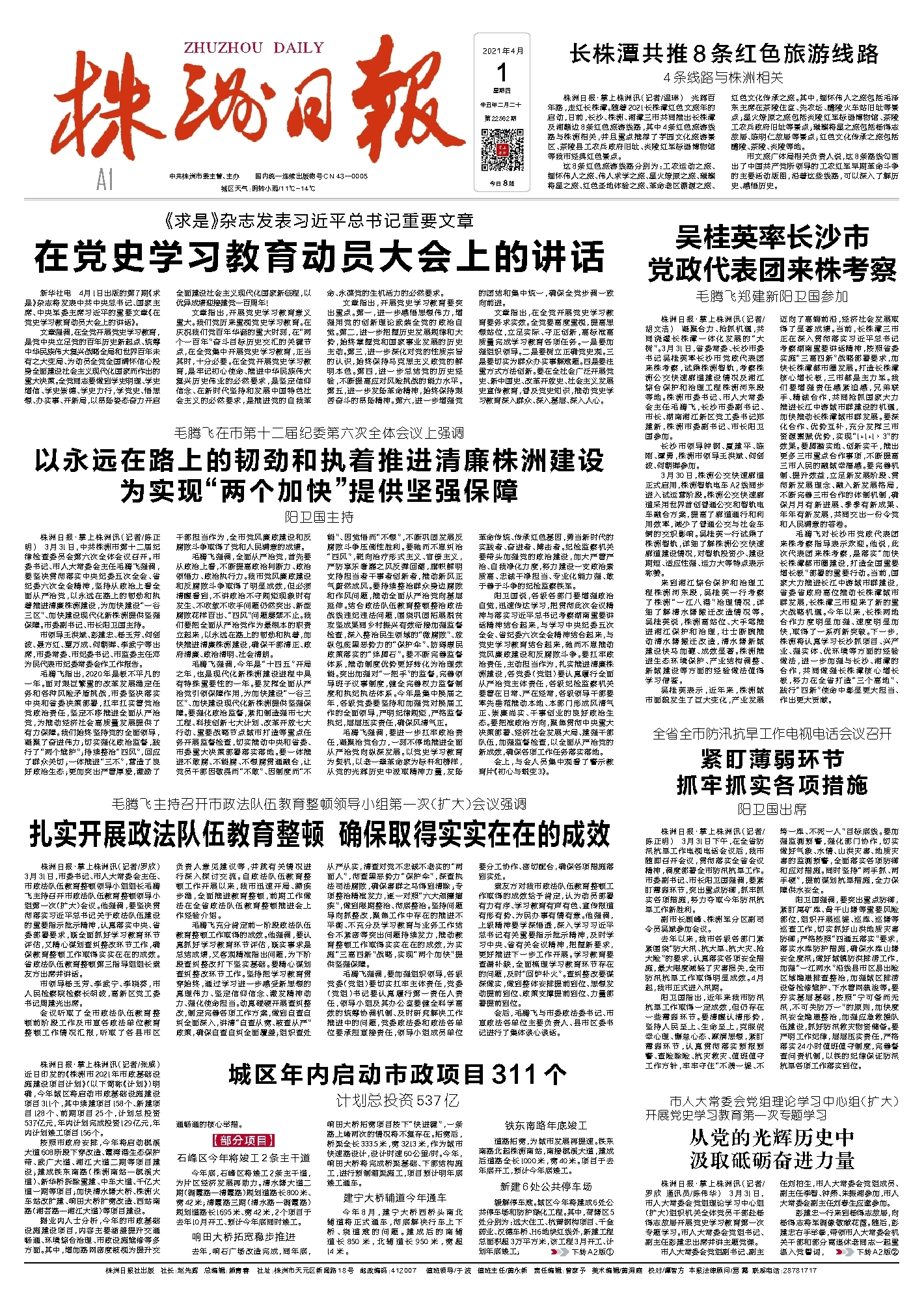 株洲日报·掌上株洲讯(记者/罗欣 通讯员/陈伟华) 3月31日,市人大常委会党组理论学习中心组(扩大)组织机关全体党员干部赴杨得志故居开展党史学习教育第一次专题学习。市人大常委会党组书记、副主任彭建忠出席并讲主题党课。