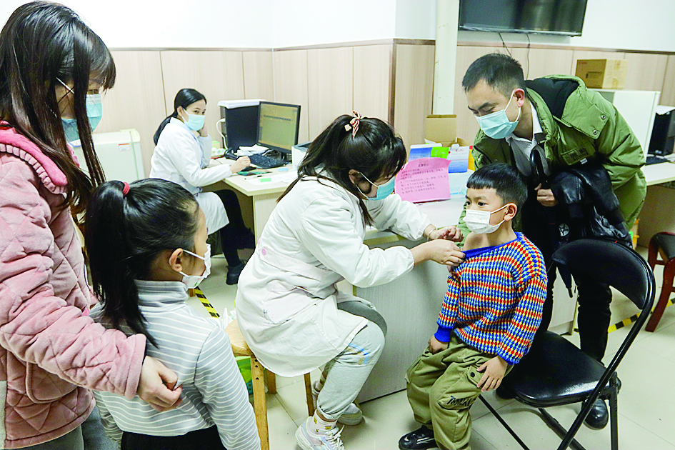 石峰区卫健局利用清明节假期,开展儿童疫苗补种工作,方便平时因为上班不便安排时间的家长。4月3日开放响石岭、井龙、铜塘湾社区卫生服务中心,4月5日开放田心、清水塘社区卫生服务中心及白石港社区卫生服务站。图为4月3日,在石峰区响石岭社区卫生服务中心,一名孩子在接种疫苗。