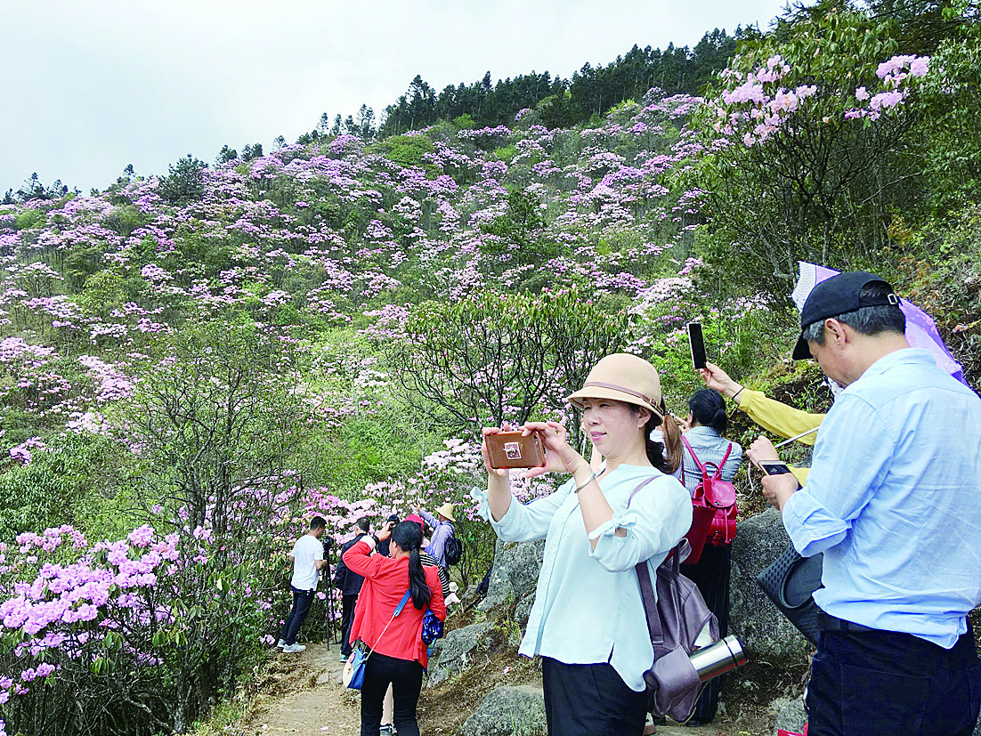 4月7日,以“会师湘赣边·共享杜鹃花”为主题的2021年炎陵县云上大院·云锦杜鹃花节在大院农(林)场启幕。漫山遍野的云锦杜鹃,正以最美姿态迎接游客到来。