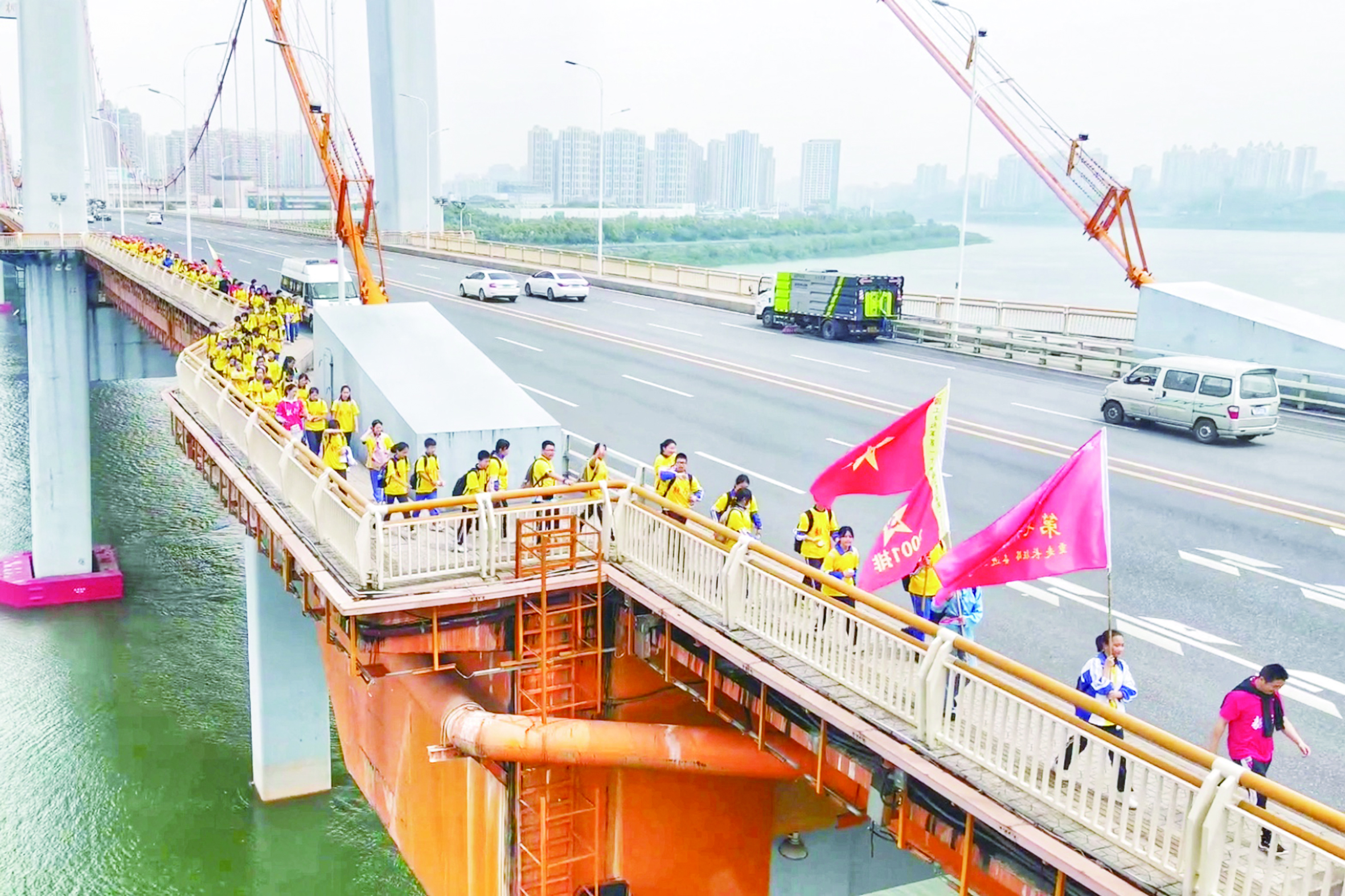 4月17日,芦淞区河长办、芦淞区教育局、景炎学校联合开展“拥抱美丽株洲,呵护幸福河湖”河长制进校园主题宣传活动暨湘江毅行活动,2000多名师生和工作人员一边感受春意盎然的绿水之美,一边了解爱水、护水和治水的环保知识。 株洲日报·掌上株洲记者/俞强年 通讯员/徐宗杰 摄