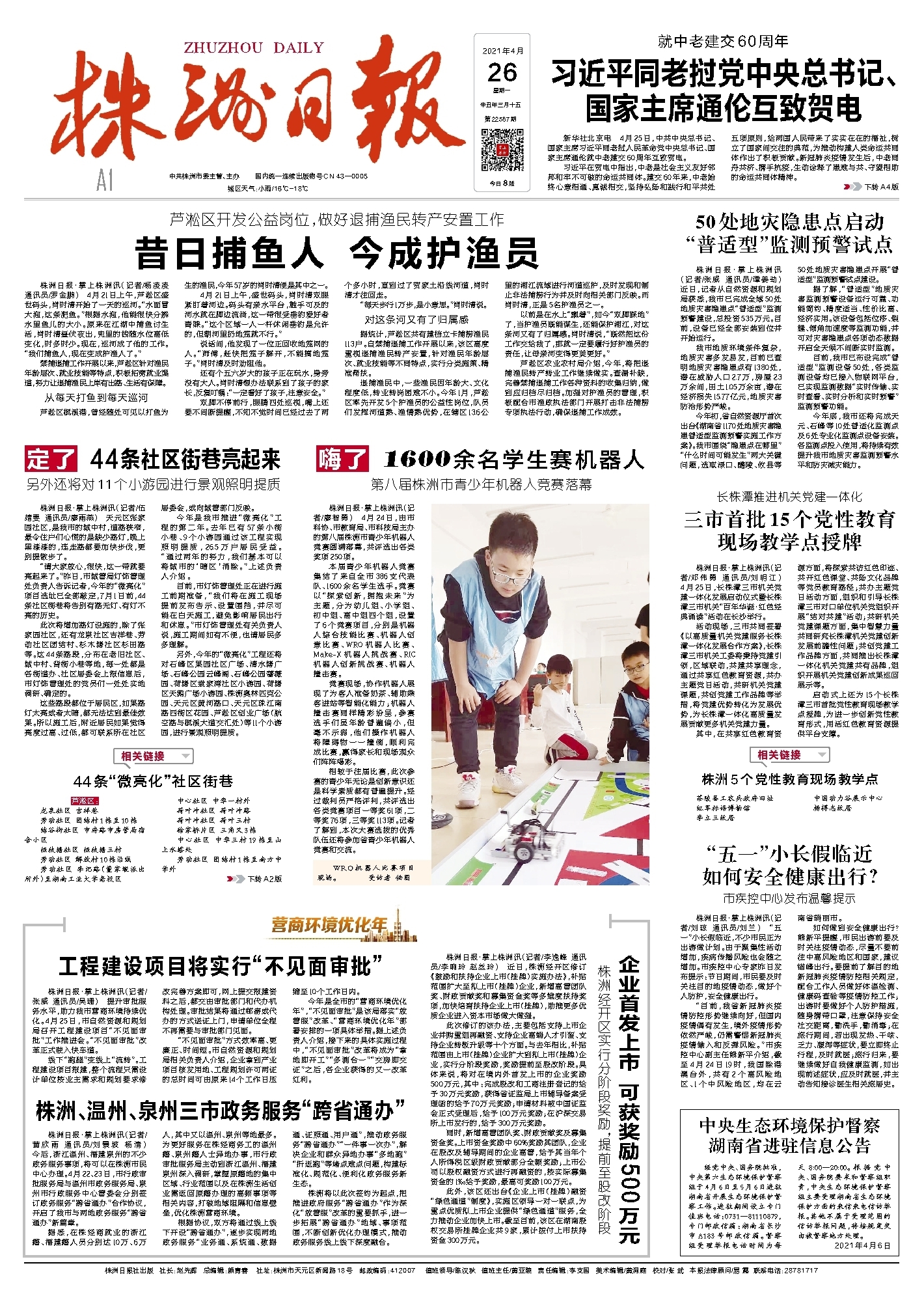 新华社北京电 4月25日,中共中央总书记、国家主席习近平同老挝人民革命党中央总书记、国家主席通伦就中老建交60周年互致贺电。