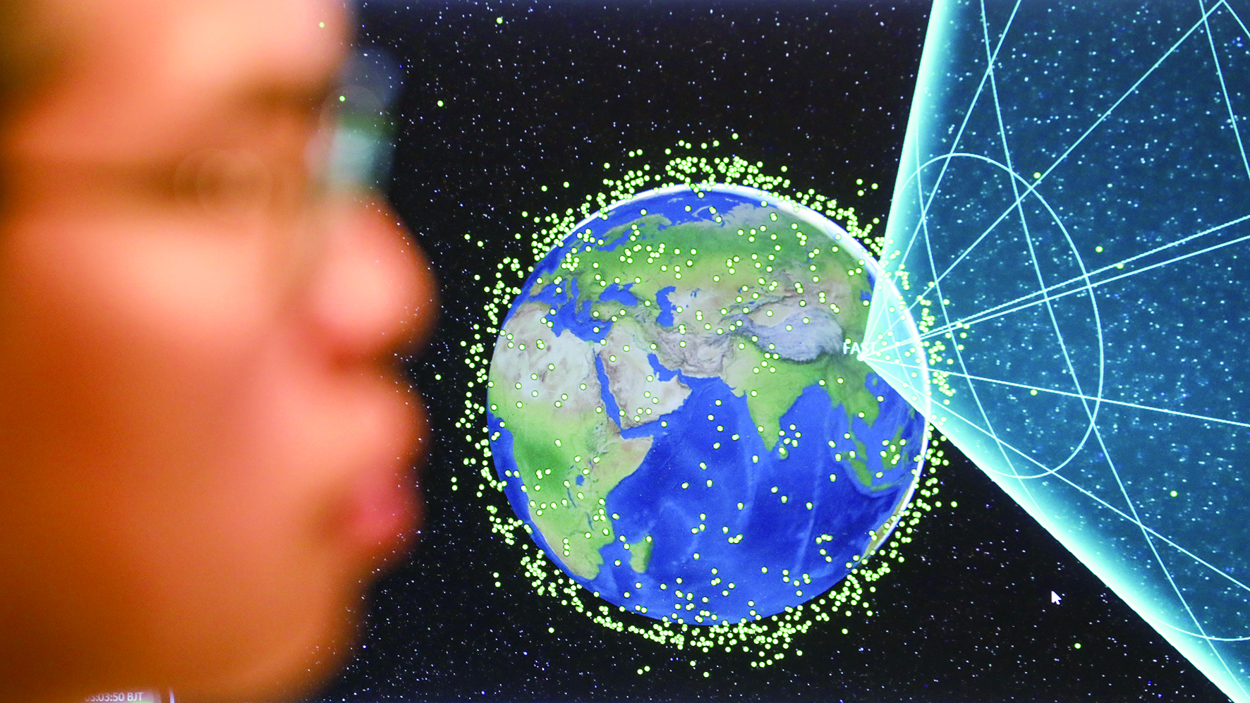 3月27日,工作人员在“中国天眼”总控室内工作。
