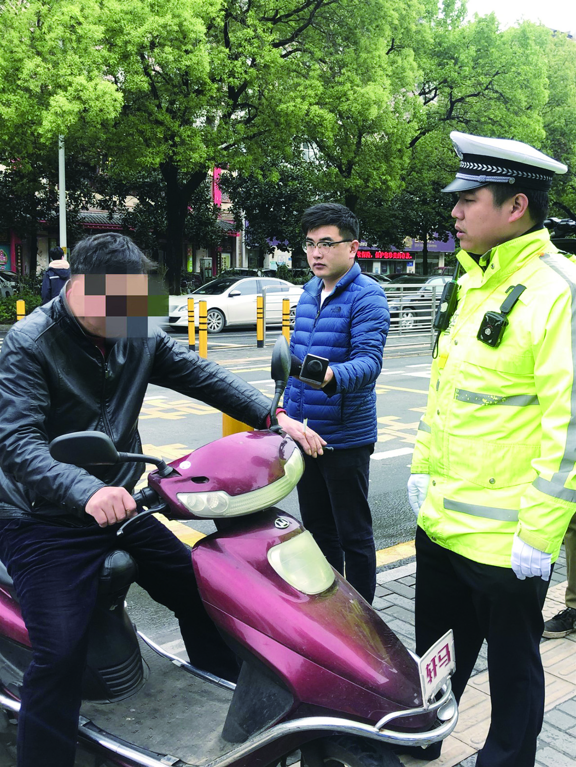 看到公交快速廊道附近有交警,个别摩托车、电动车驾驶员选择掉头逆行,情况十分危险。
