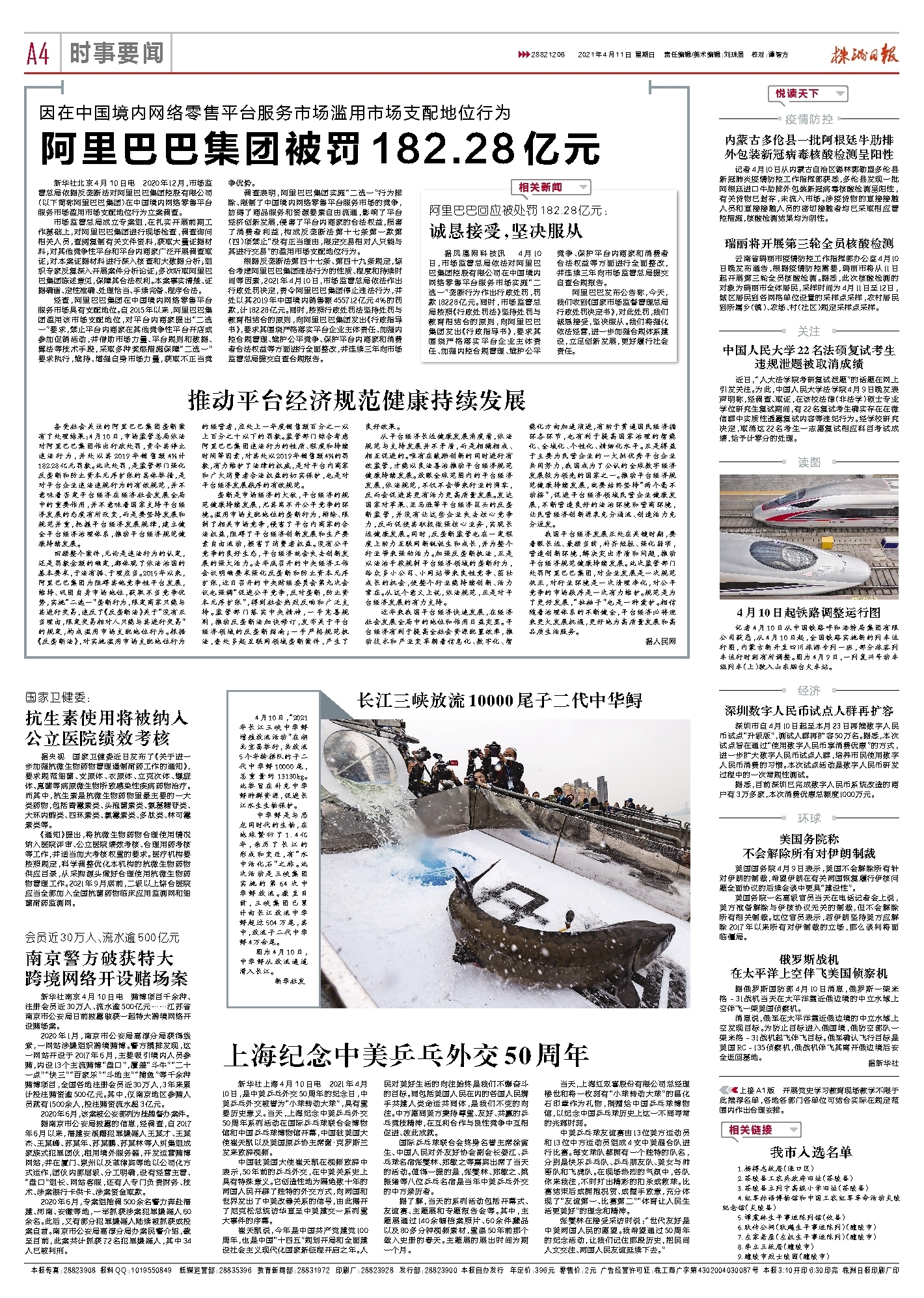 新华社上海4月10日电 2021年4月10日,是中美乒乓外交50周年的纪念日,中美乒乓外交被誉为“小球转动大球”,具有重要历史意义。当天,上海纪念中美乒乓外交50周年系列活动在国际乒乓球联合会博物馆和中国乒乓球博物馆开幕,中国驻美国大使崔天凯以及美国原乒协主席谢·克罗斯兰发来致辞视频。
