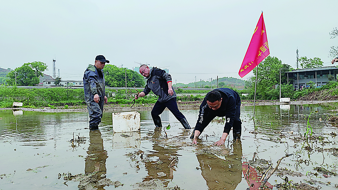 龙泉街道党员干部“变身”为农事志愿者,下地种湘莲。 株洲日报·掌上株洲记者/杨凌凌 摄
