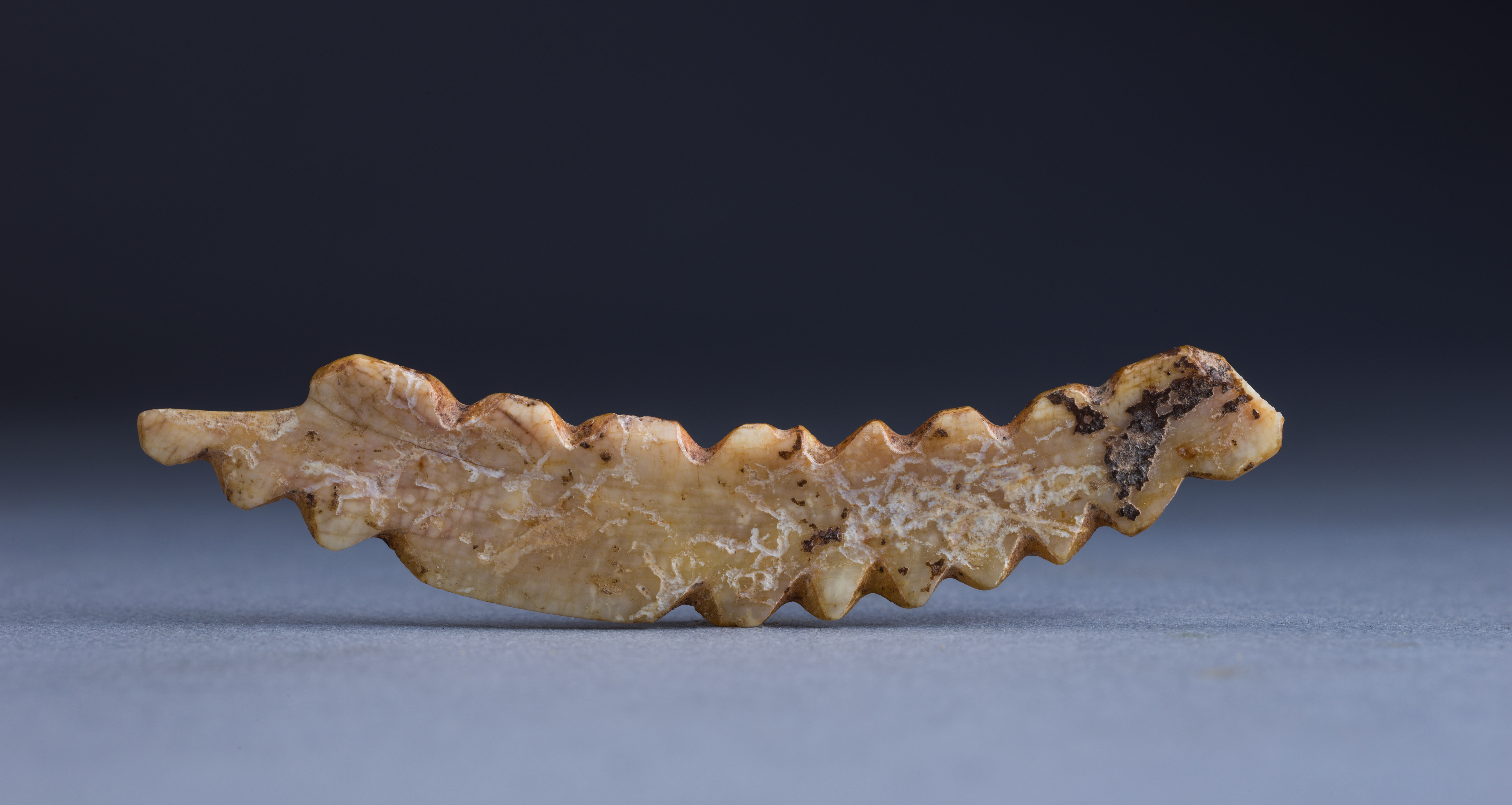 这是河南省巩义市河洛镇双槐树遗址出土的“牙雕家蚕”(资料照片)。