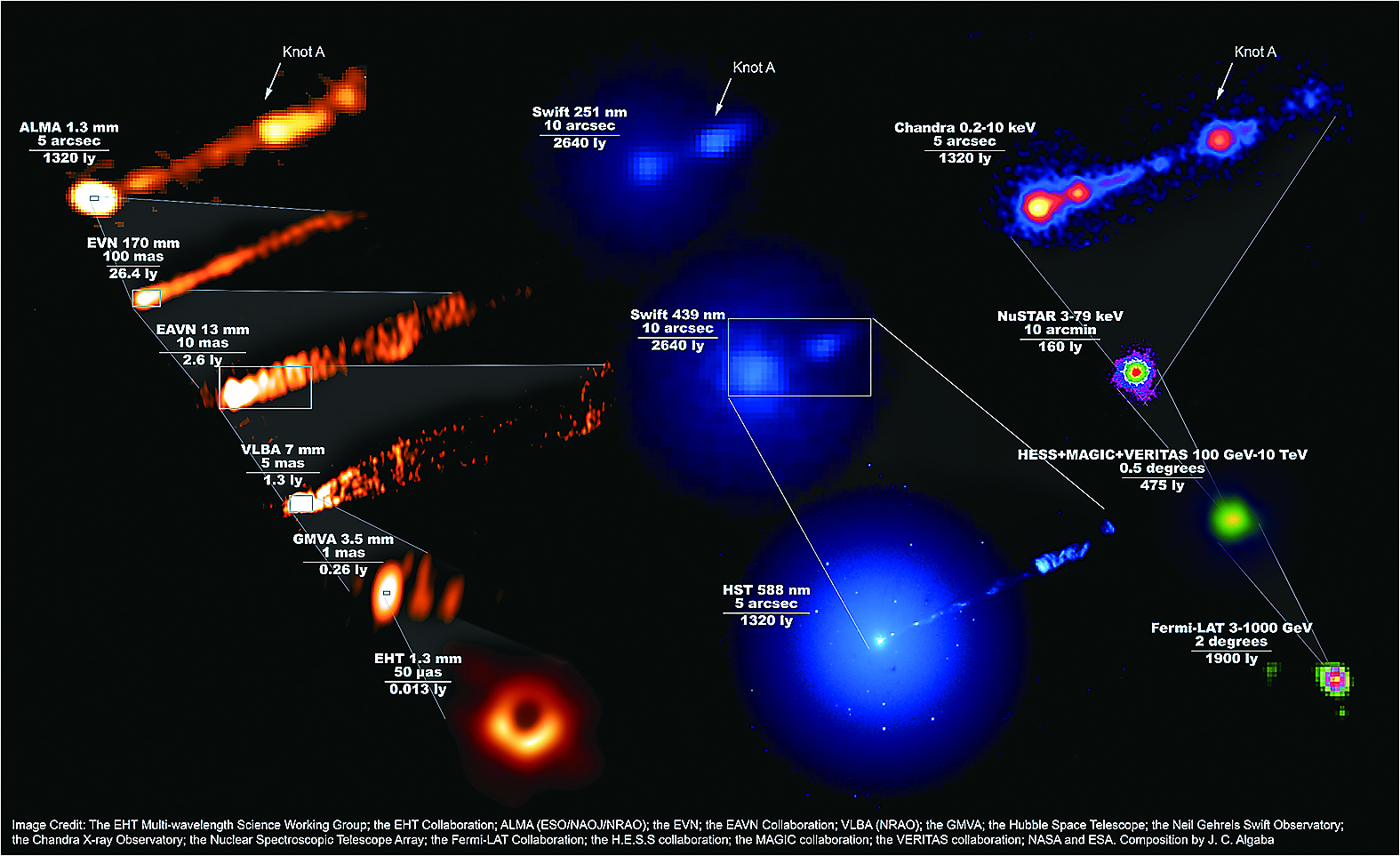 科学家利用事件视界望远镜(EHT)对这个黑洞进行观测的同时,还协调了全球19台望远镜阵对这个黑洞及其喷流,开展了迄今频率覆盖最广的多波段同步观测,成功收集到2017年3月底至5月中旬的观测数据。
