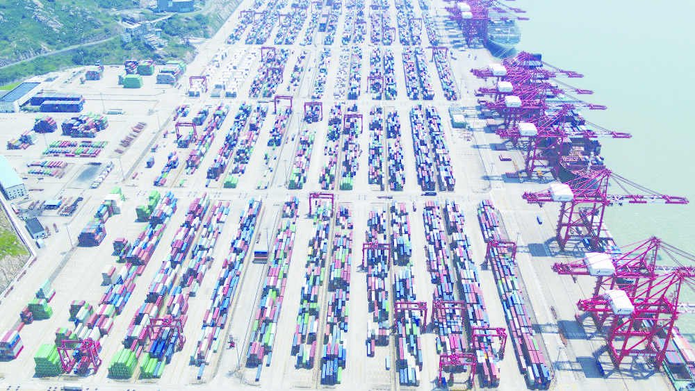 上海洋山港集装箱码头(无人机照片)。 新华社记者 丁汀 摄