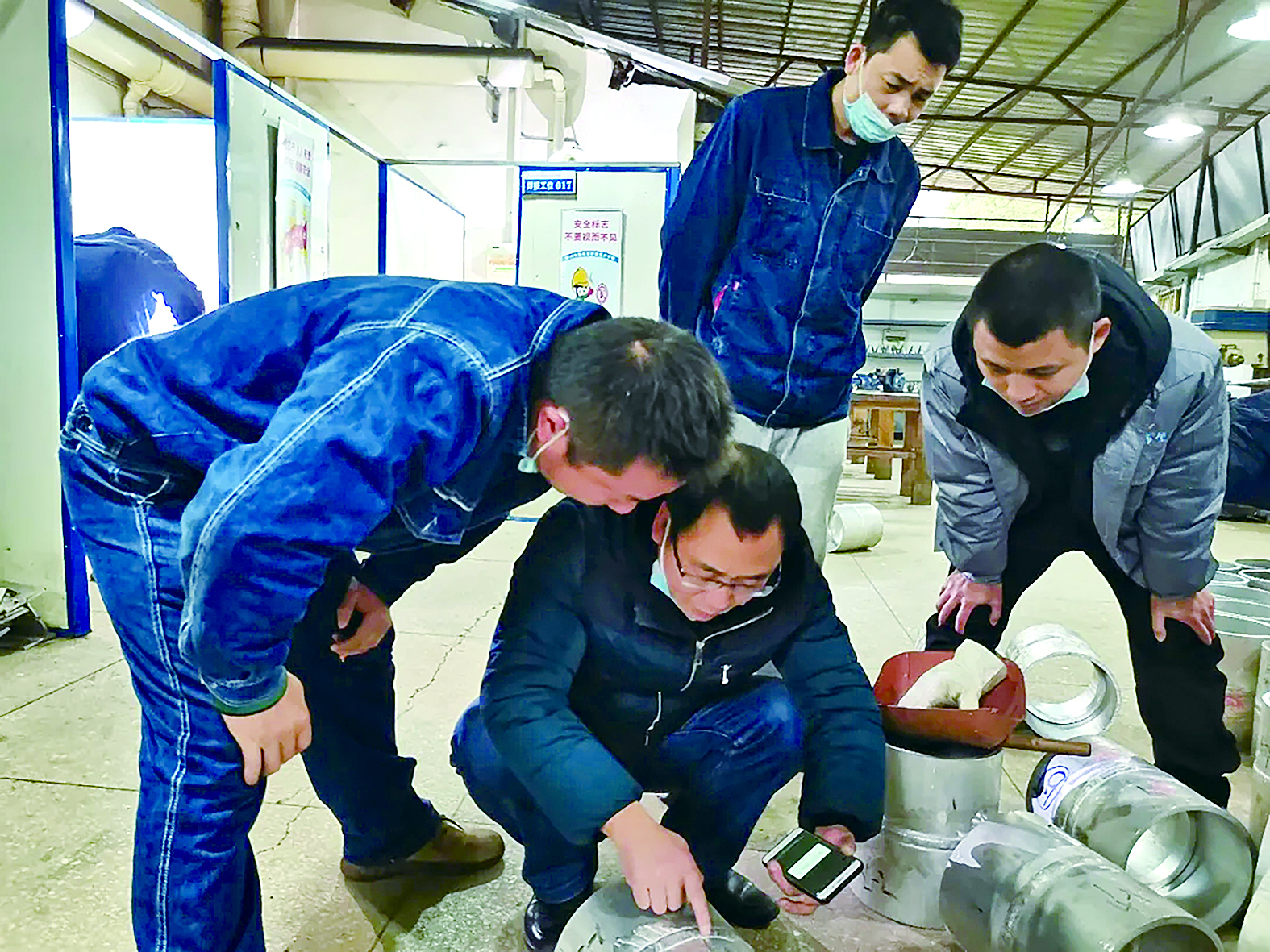 焊接培训“领头人”蔡华文在点评学员的作品并进行指导。 (受访单位供图)