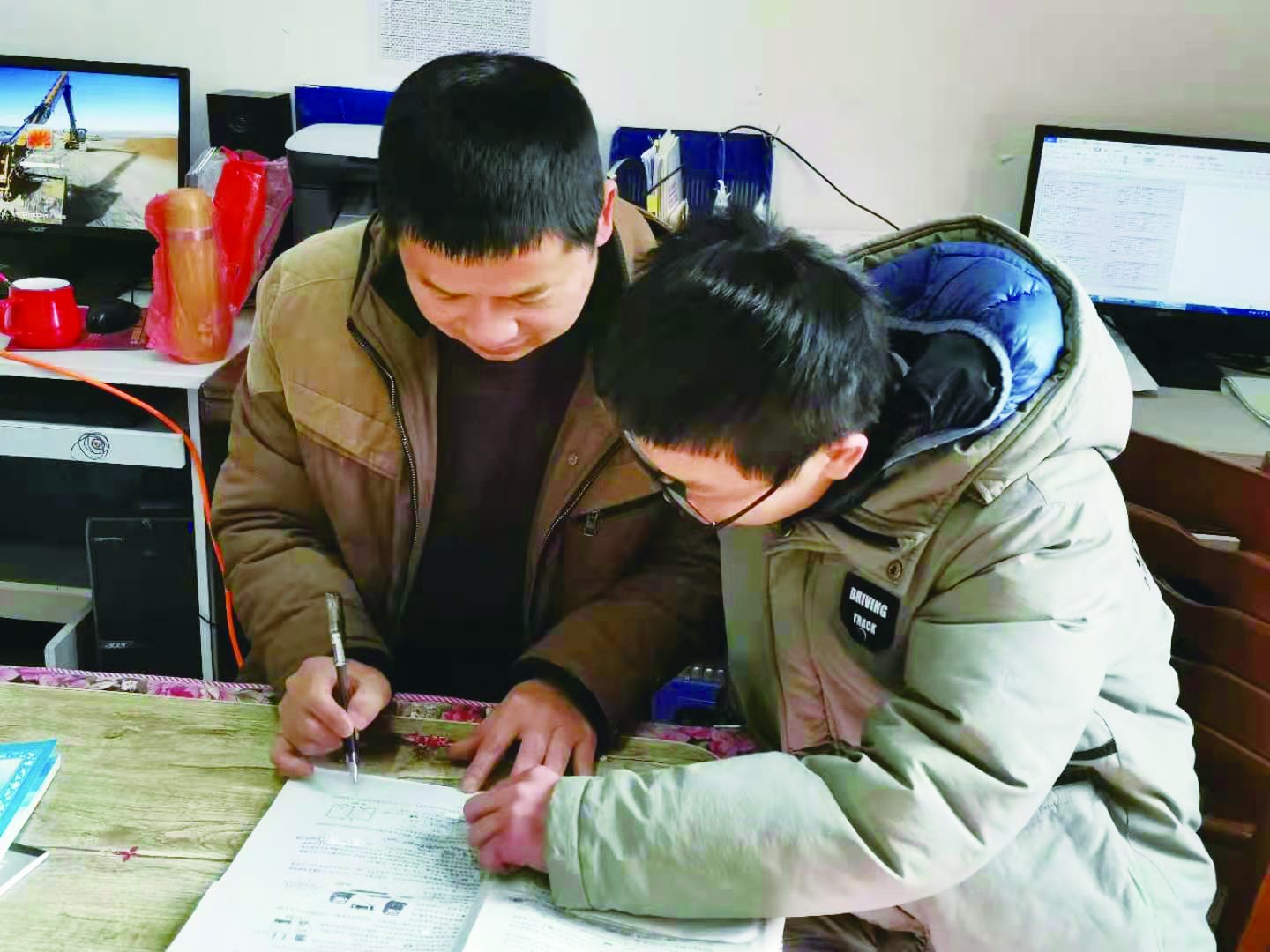 课外时间,王子亿(左一)经常义务辅导学生学习。 受访者 供图