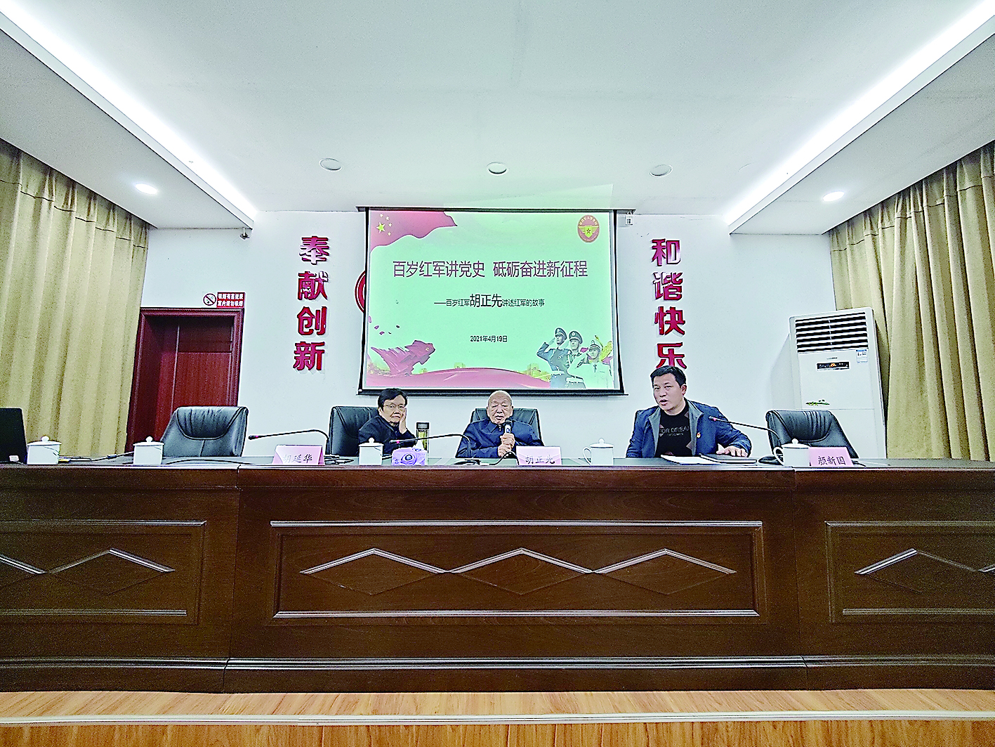 株洲日报·掌上株洲讯(记者/邱鹏 通讯员/谭龙伟) “我是一名有83年党龄的老共产党员了……”4月19日上午,在石塘冲军休所学习室内,103岁老红军胡正先给市退役军人事务局全体党员干部、职工讲党史、上党课。