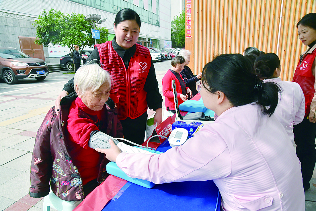 市中心血站党员在为市民义诊。通讯员 供图