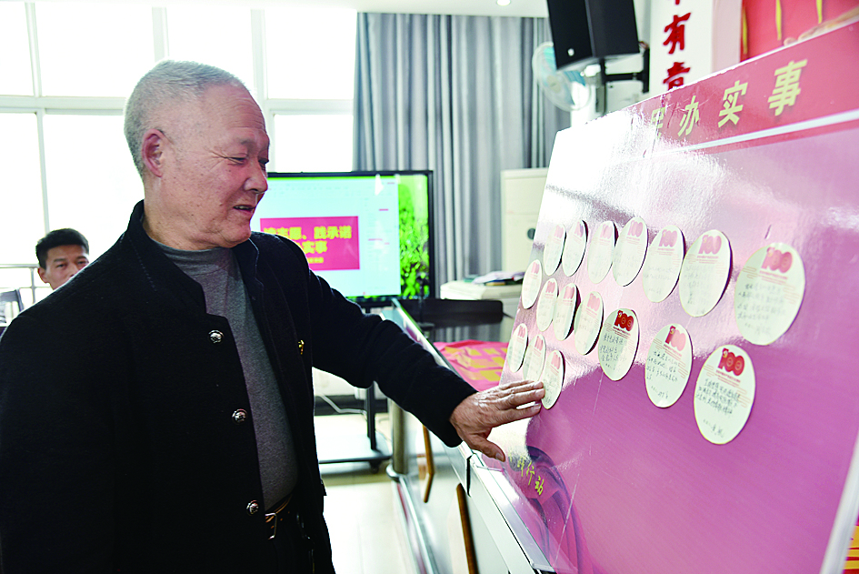 老党员在“我为群众办实事承诺卡”上写下自己的承诺。李钰 摄