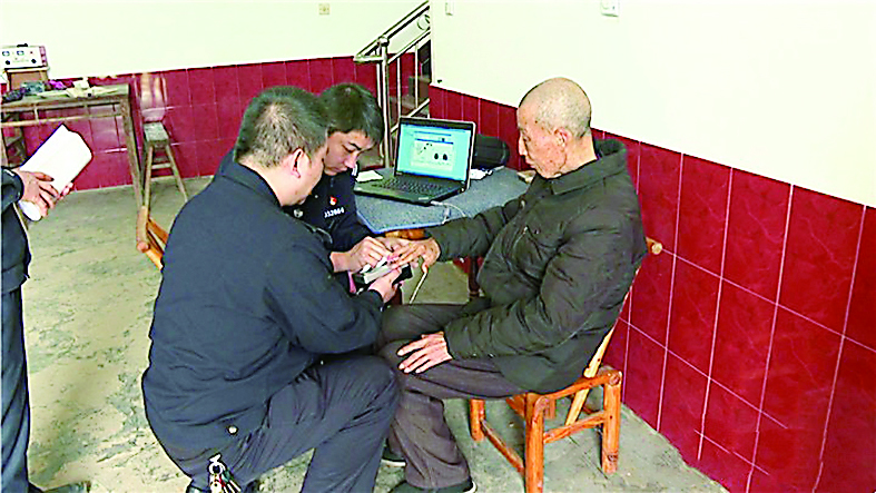 民警为挽洲岛上村民录指纹。郭璋 供图