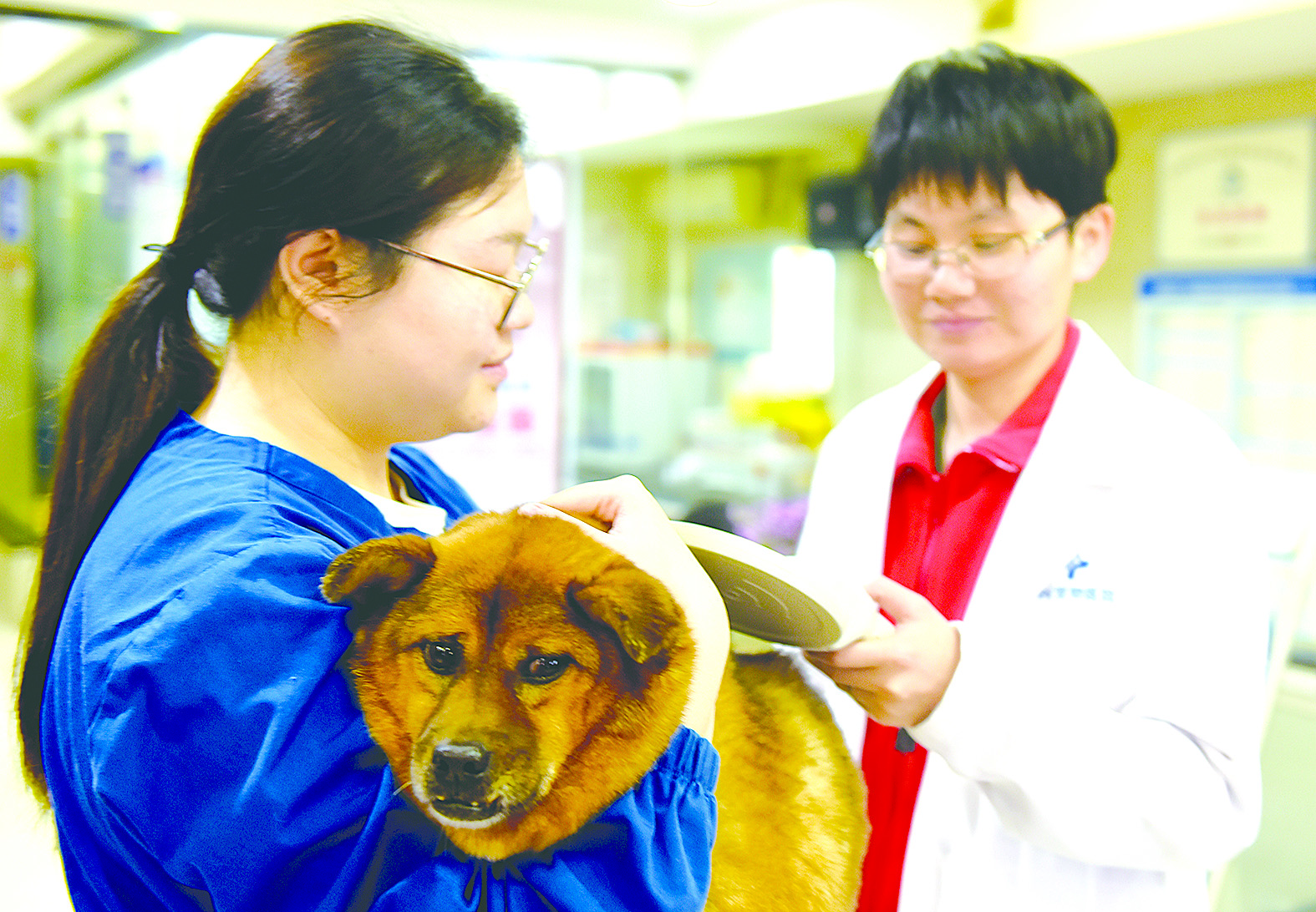 犬只被主人带去办证点诊治。 记者 沈全华 摄