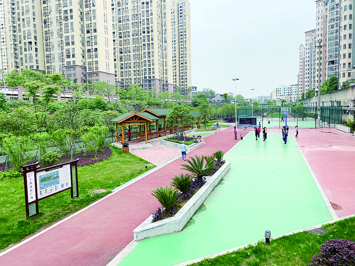 石峰区丁山社区广场改造后,已成为文体设施齐全的“社区游园”。 记者 李军 摄
