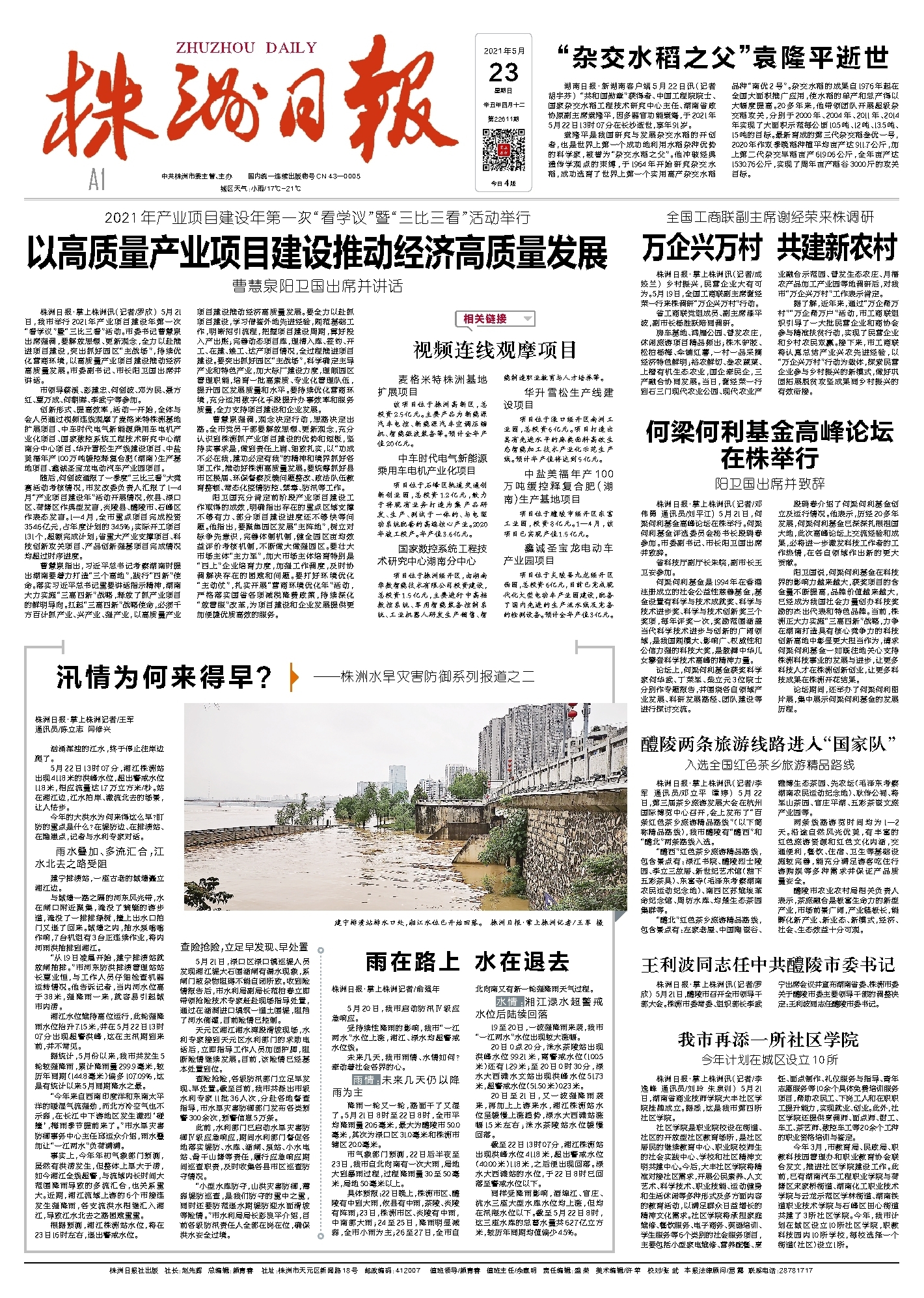 湖南日报·新湖南客户端5月22日讯(记者 胡宇芬) “共和国勋章”获得者、中国工程院院士、国家杂交水稻工程技术研究中心主任、湖南省政协原副主席袁隆平,因多器官功能衰竭,于2021年5月22日13时07分在长沙逝世,享年91岁。