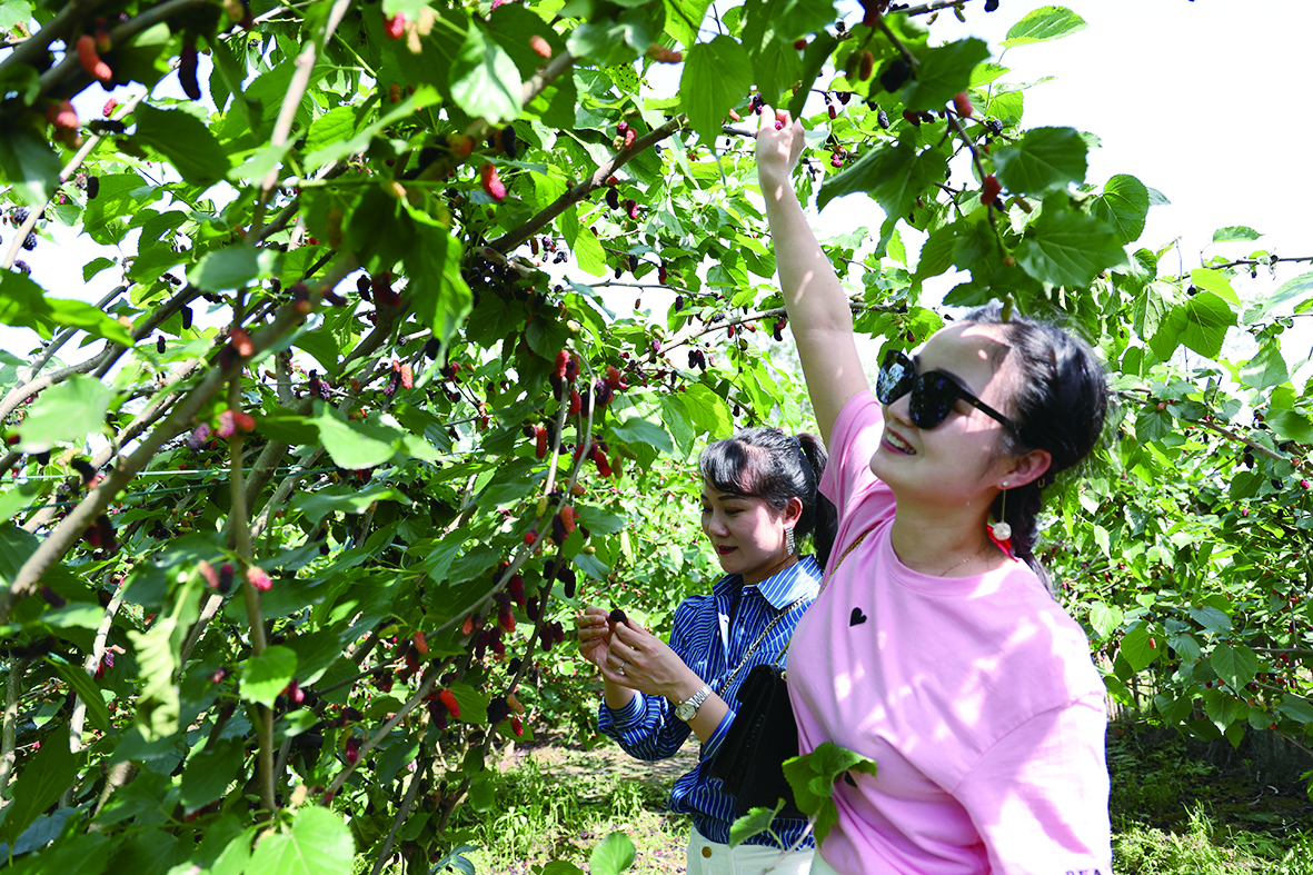市民趁着“五一”假期来到古桑洲采摘桑葚。 株洲日报·掌上株洲记者/温琳 摄