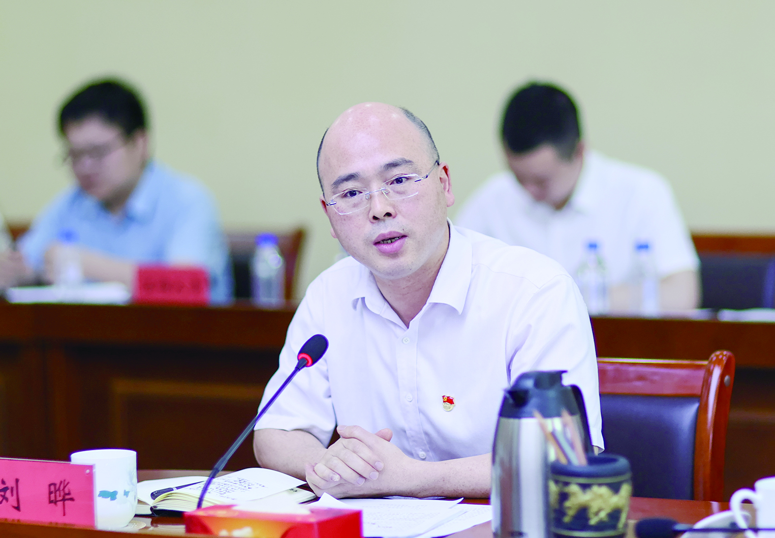 市委常委、市委秘书长何朝晖,市委常委、组织部长李武宁参加座谈。