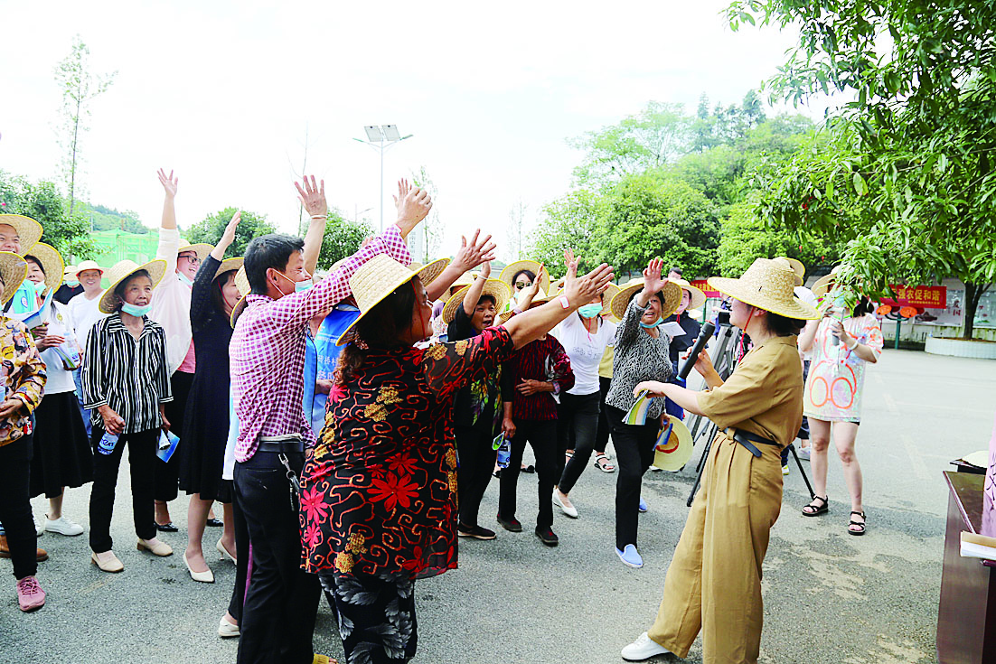 发放宣传资料后现场“考试”,村民踊跃参与有奖问答环节。 记者 成姣兰 摄