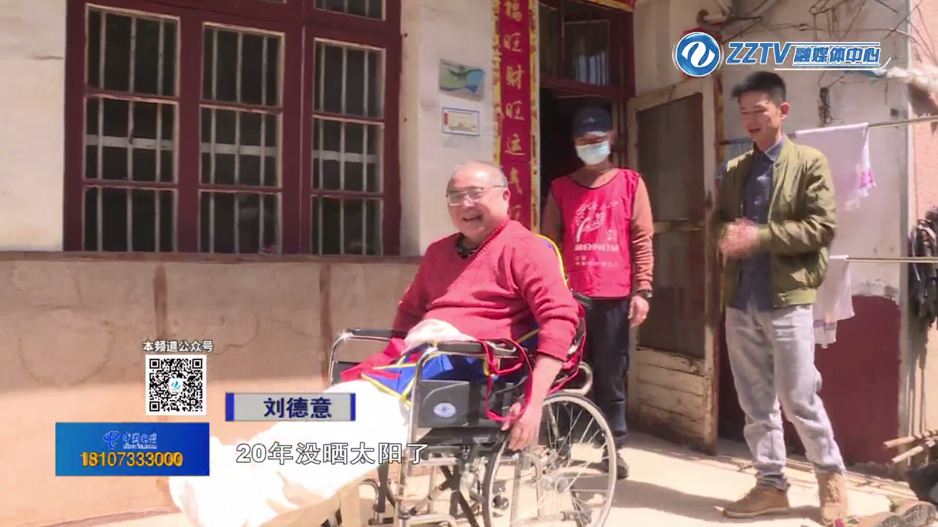 ▲在提供居家托养服务的社工帮助下,云龙示范区三冲社区截瘫卧床21年的刘德意终于走出家门,沐浴久违的春日暖阳。