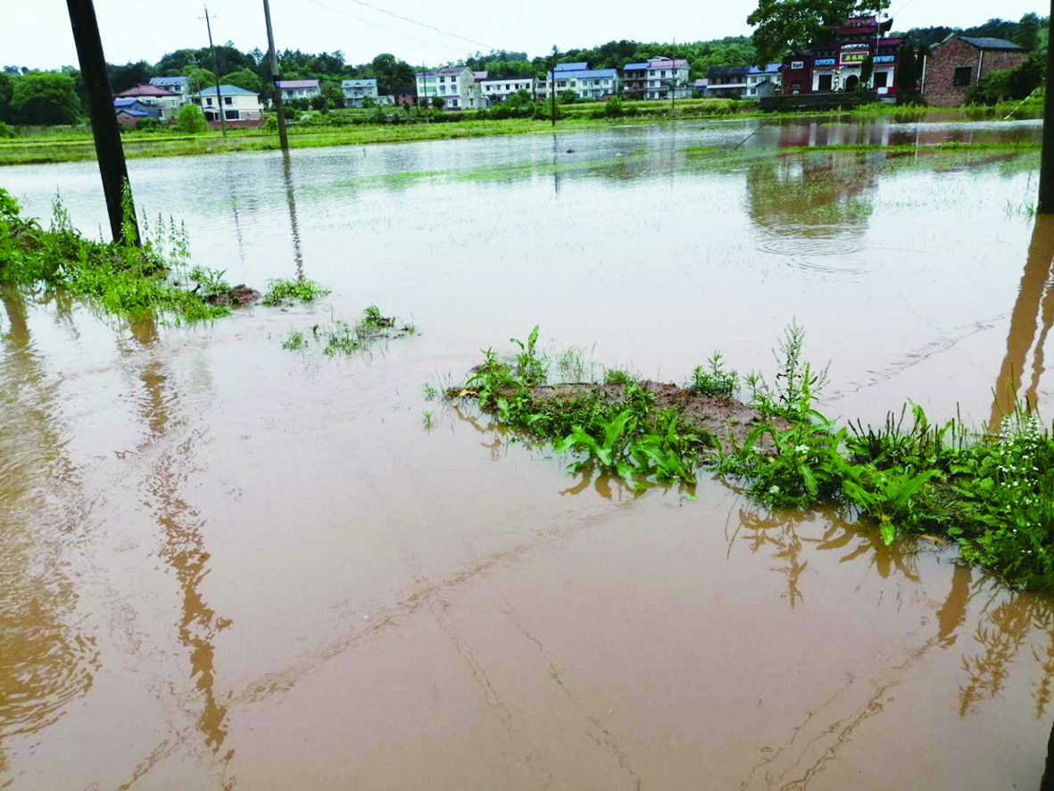 低洼地带的农田,禾苗陷入深水中。 株洲日报·掌上株洲记者/王军 摄