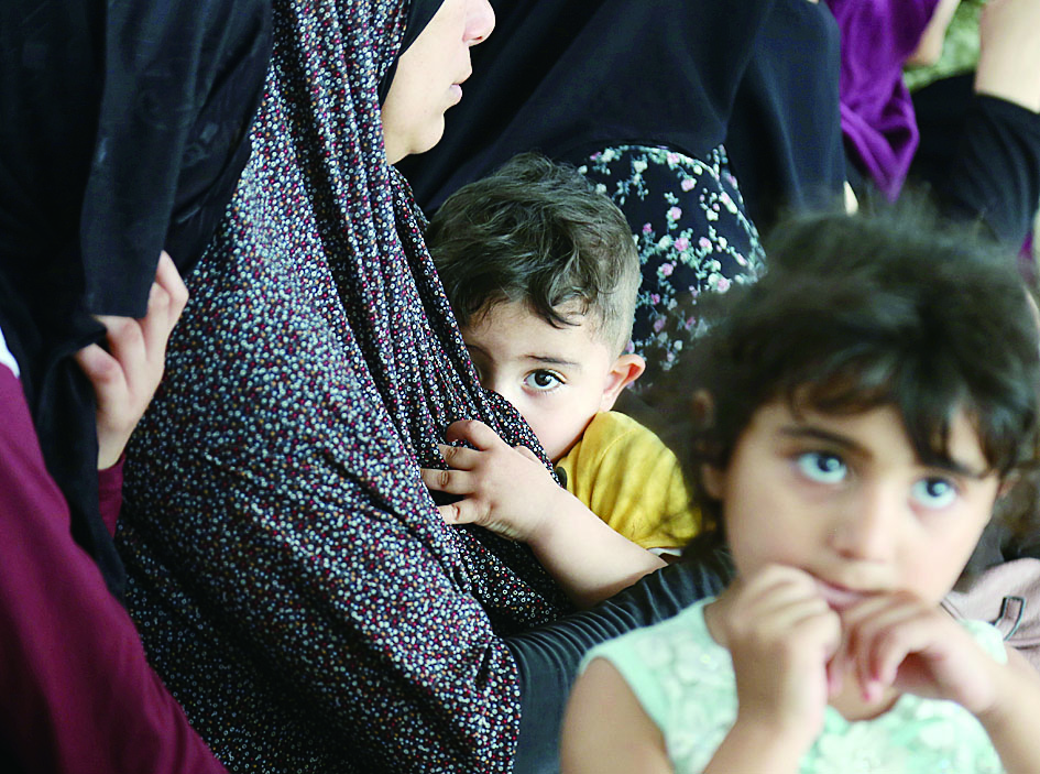5月17日,受巴以冲突影响而逃离家园的巴勒斯坦妇女和儿童在加沙地带拉法的一所学校临时栖身。
