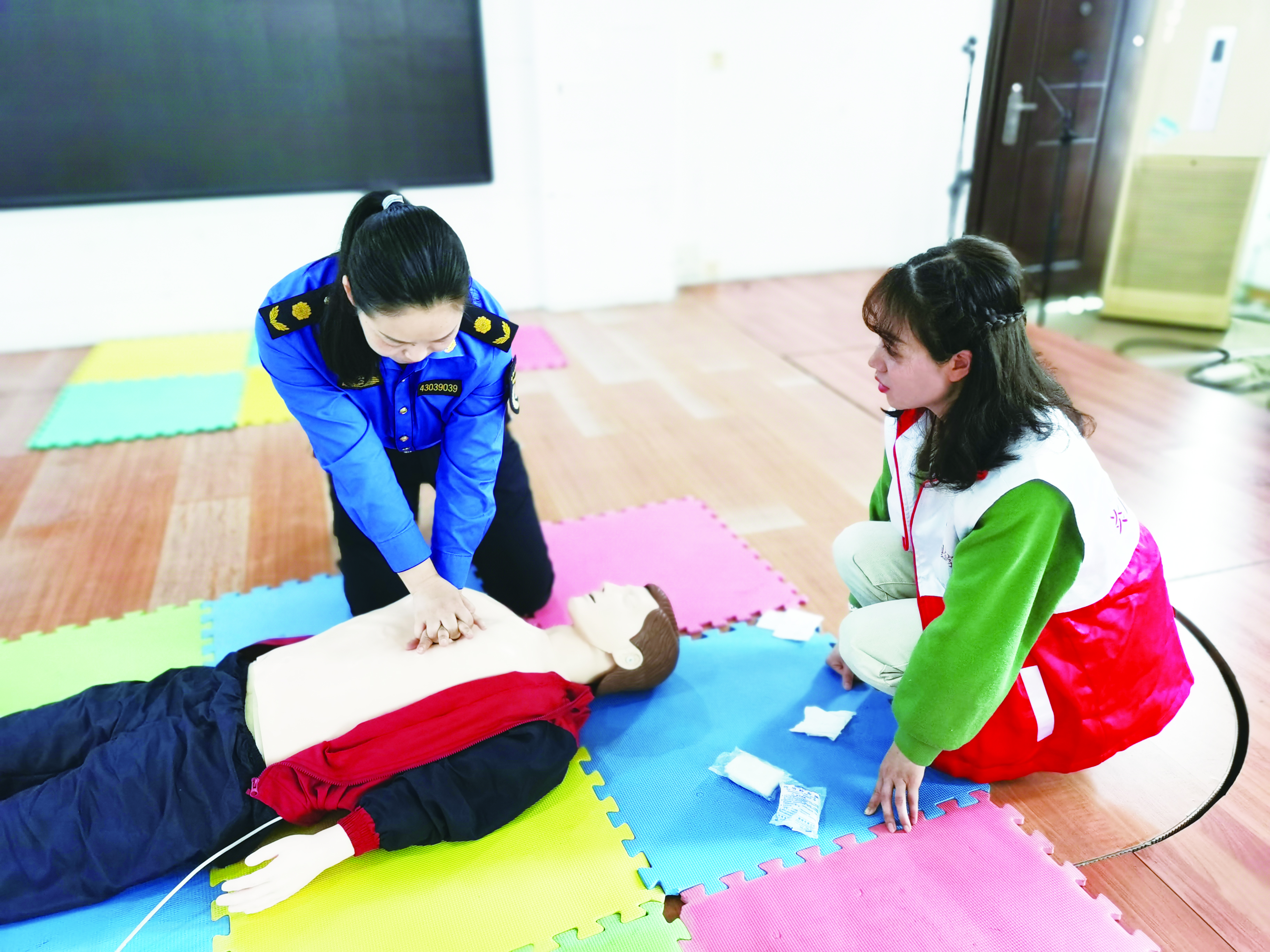 培训中,针对城管人员的工作特性,授课老师围绕心肺复苏、气道异物梗阻急救、意外伤害与创伤包扎、止血等常见常用救护知识、救护原则、救护技巧和注意事项,进行了专业讲解。随后,又利用医用模特,让城管人员演练心肺复苏、气道异物梗阻急救等,掌握应急救援的基本技巧和注意事项。