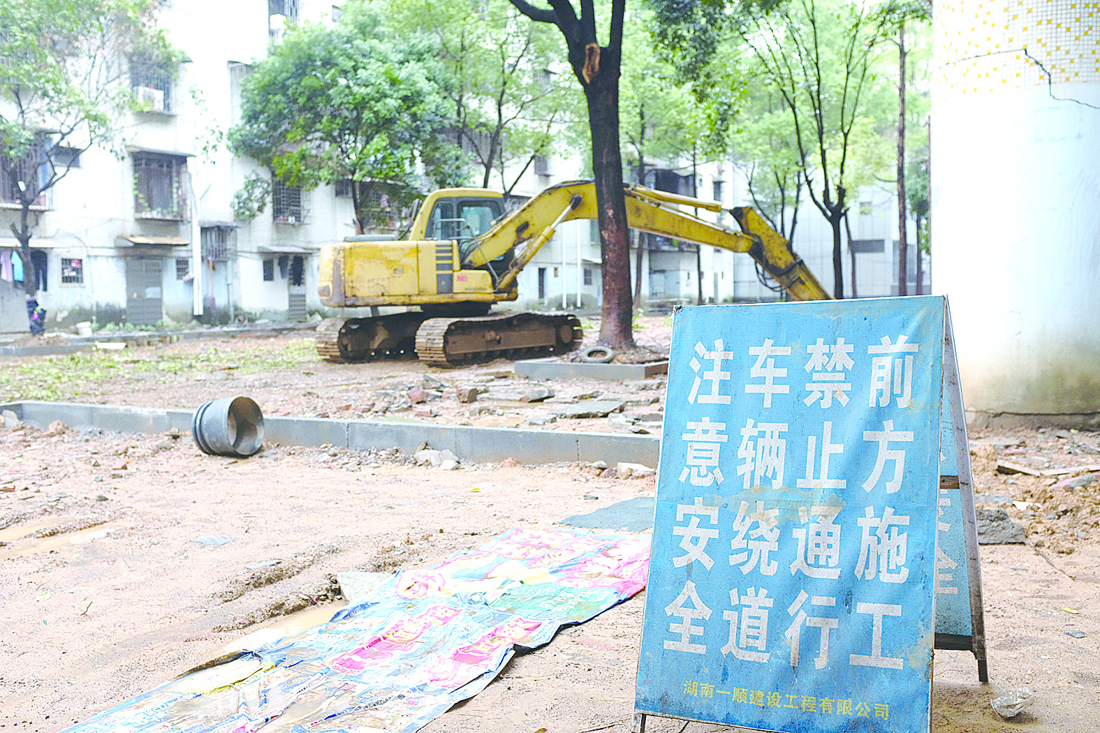 正在进行老旧小区提质改造工程的天元区金锦花园。 黄欣雨 摄