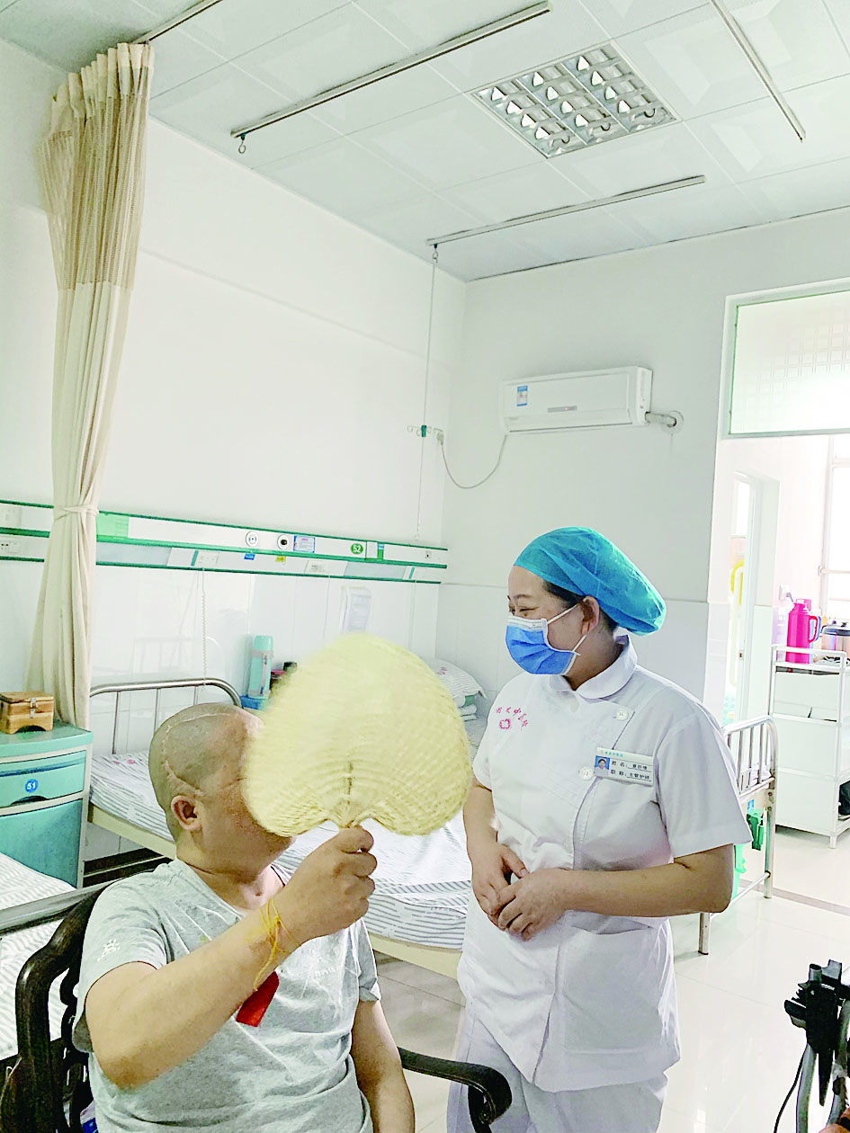 日子一天天过去,但病床上的黄先生似乎依然没有什么变化。人都是有情绪的,忍耐得太久,终究会爆发。因为看不到希望,黄先生的家人痛苦绝望,甚至经常以泪洗面。医护人员了解后,多次为病人家属进行疏导,他们的关系也越来越近。后来,考虑到医疗费用、家人奔波等问题,黄先生的康复采取住一段时间院,回一段时间家,医护人员则通过社交软件、电话等,和黄先生家人保持联络,沟通病人的情况。