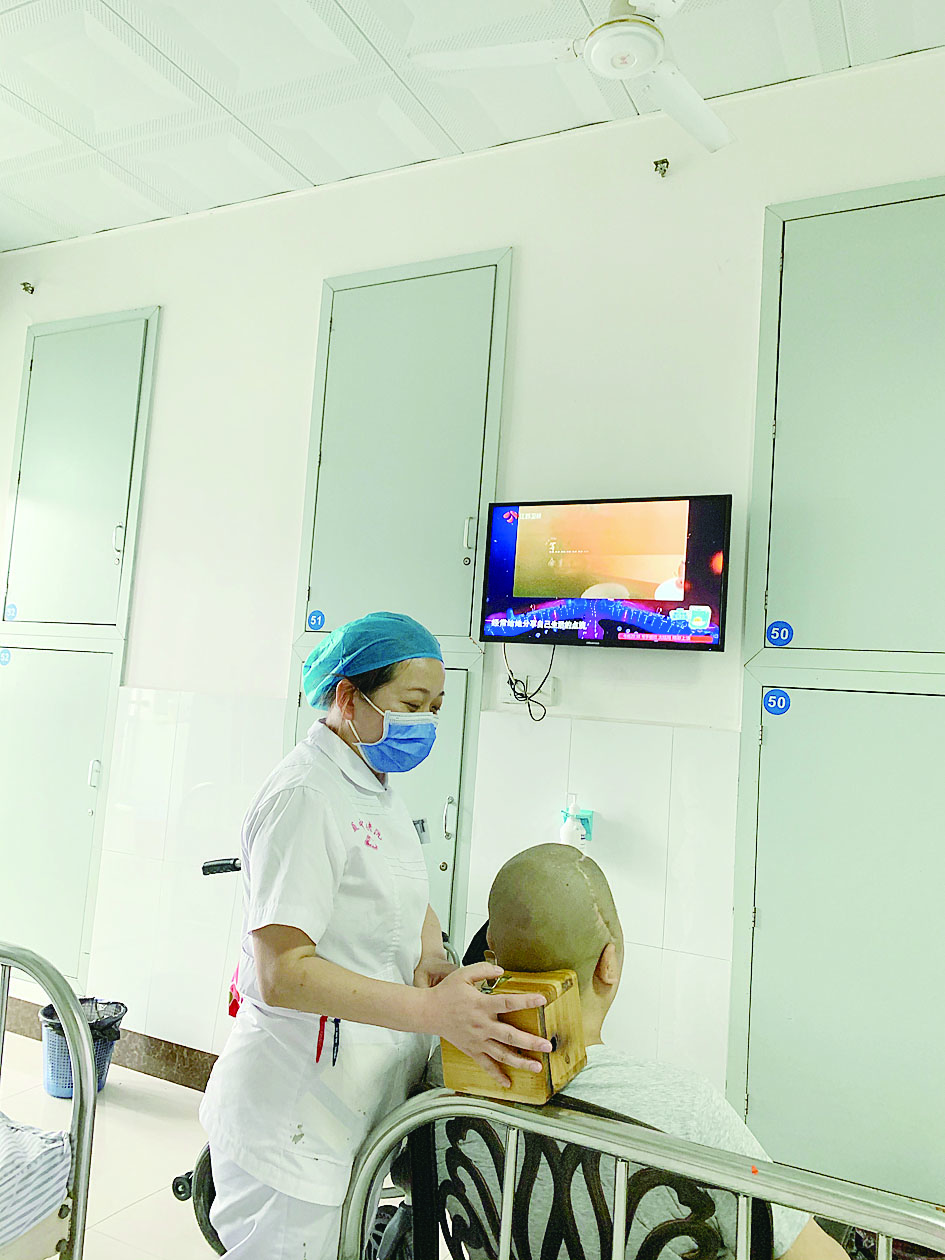 中医方面,治以补气活血、舒经通络。比如开窍醒神,予以中药、针刺、穴位贴敷、穴位注射等;西医方面,予以被动活动训练、电动起立床训练、关节松动手法训练、低频脉冲电刺激等。促醒训练方面则更加具有针对性,除了比较常见的正中神经刺激、酸甜苦味觉刺激、辣的痛觉刺激,在医护人员的指导下,黄先生的家人还为他特意录制了一些音频。“比如他女儿的音频,背书以及呼唤父亲的声音,还有,我们听说患者车祸前特别喜欢的陈奕迅和刘德华的歌,就帮着找《十年》《爱你一万年》等经典歌曲循环放给病人听……。”唐森介绍。