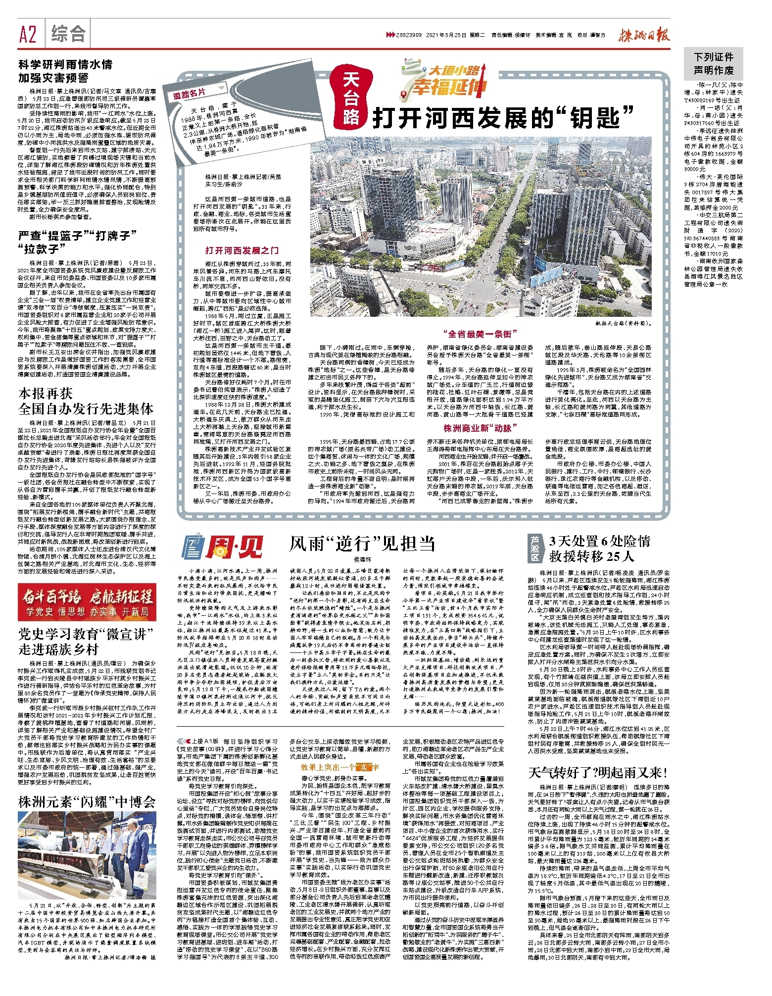 受持续性降雨的影响,我市“一江两水”水位上涨。5月20日,我市启动防汛Ⅳ级应急响应。截至5月23日7时22分,湘江株洲站退出40米警戒水位。但近期全市仍以小雨为主,局地中雨,必须加强水库、堤坝防汛调度,防御中小河流洪水及强降雨重叠区域的地质灾害。